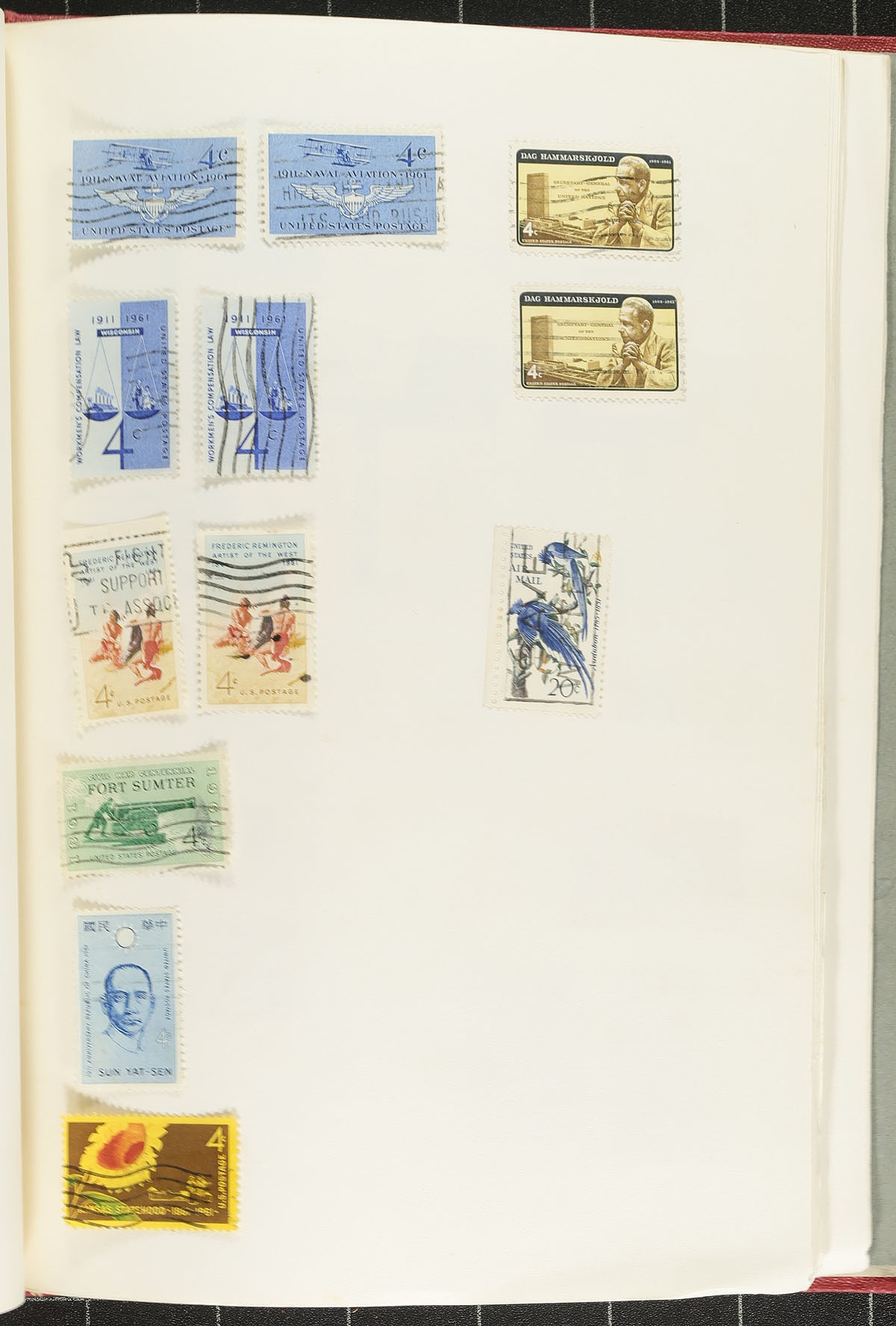 Large group of worldwide material in 6 stockbooks and 4 albums, containing starter collections of Poland, Czechoslovakia, United States, Hungary, and United Nations, along with three worldwide albums containing several hundreds of stamps ranging from the 1890's up to the 1960's (or thereabouts), containing mostly European and British Commonwealth countries. Most of the stamps appear to be used, but did notice some mint stamps scattered throughout. Not checked at all for catalogue values, so could have a few finds. A nice project for the worldwide collector. Estimate =