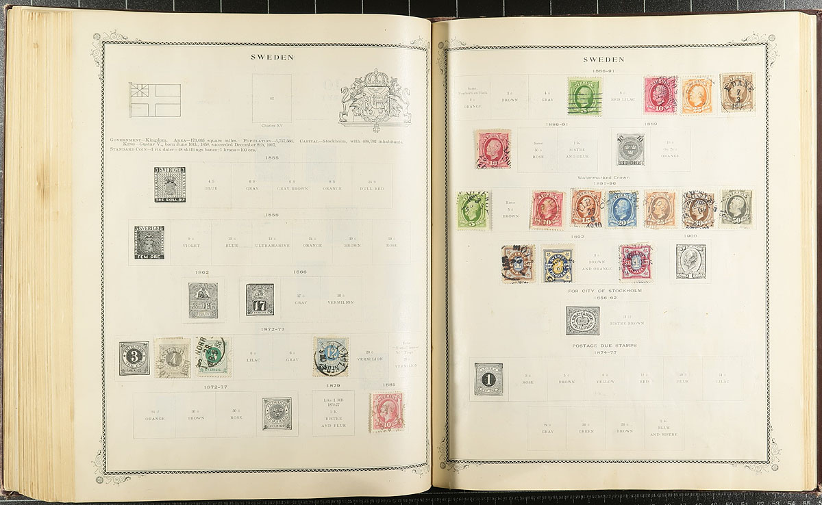 Large group of worldwide material in 6 stockbooks and 4 albums, containing starter collections of Poland, Czechoslovakia, United States, Hungary, and United Nations, along with three worldwide albums containing several hundreds of stamps ranging from the 1890's up to the 1960's (or thereabouts), containing mostly European and British Commonwealth countries. Most of the stamps appear to be used, but did notice some mint stamps scattered throughout. Not checked at all for catalogue values, so could have a few finds. A nice project for the worldwide collector. Estimate =
