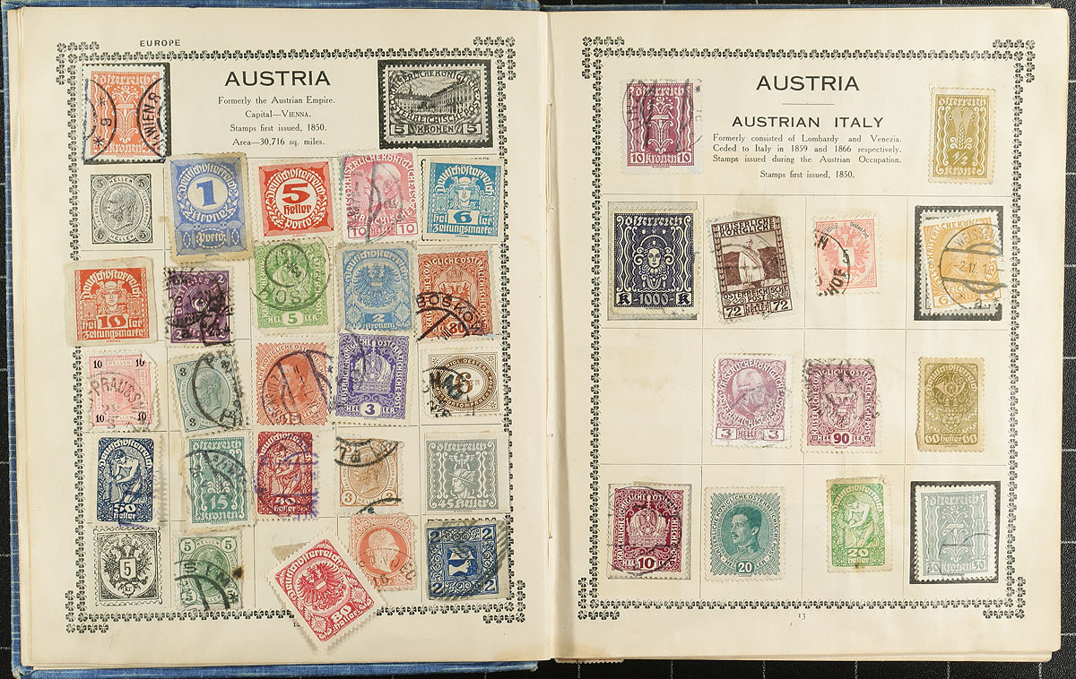 Large group of worldwide material in 6 stockbooks and 4 albums, containing starter collections of Poland, Czechoslovakia, United States, Hungary, and United Nations, along with three worldwide albums containing several hundreds of stamps ranging from the 1890's up to the 1960's (or thereabouts), containing mostly European and British Commonwealth countries. Most of the stamps appear to be used, but did notice some mint stamps scattered throughout. Not checked at all for catalogue values, so could have a few finds. A nice project for the worldwide collector. Estimate =