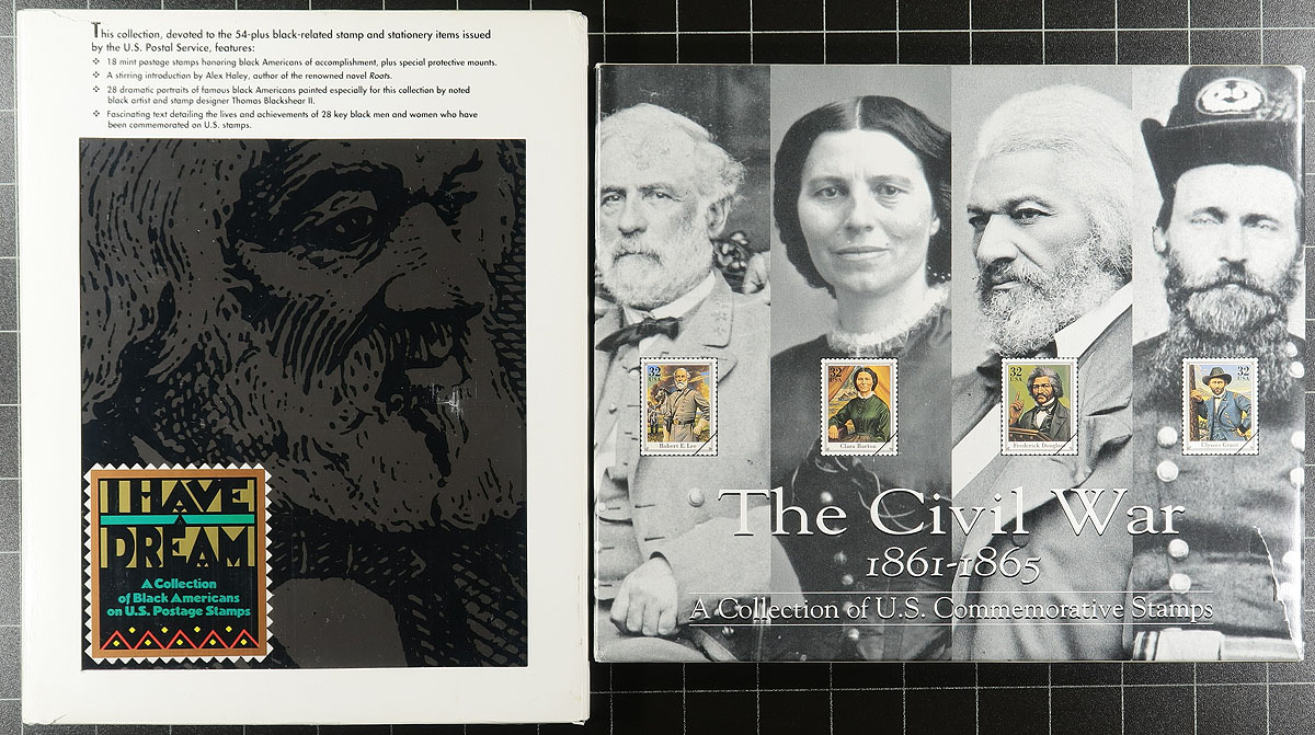 Accumulation never hinged material, including a few thematic collections noting "Legends of the West", "History's Messages Marvels of the Mail", "The Civil War 1861-1865", and "I Have A Dream", along with an accumulation of singles, blocks, coil strips, etc in envelopes, and a stockbook. Face value alone is over US$250.00 ($341.85 CDN). A nice clean lot for collectors, dealers, and postage users. Estimate =