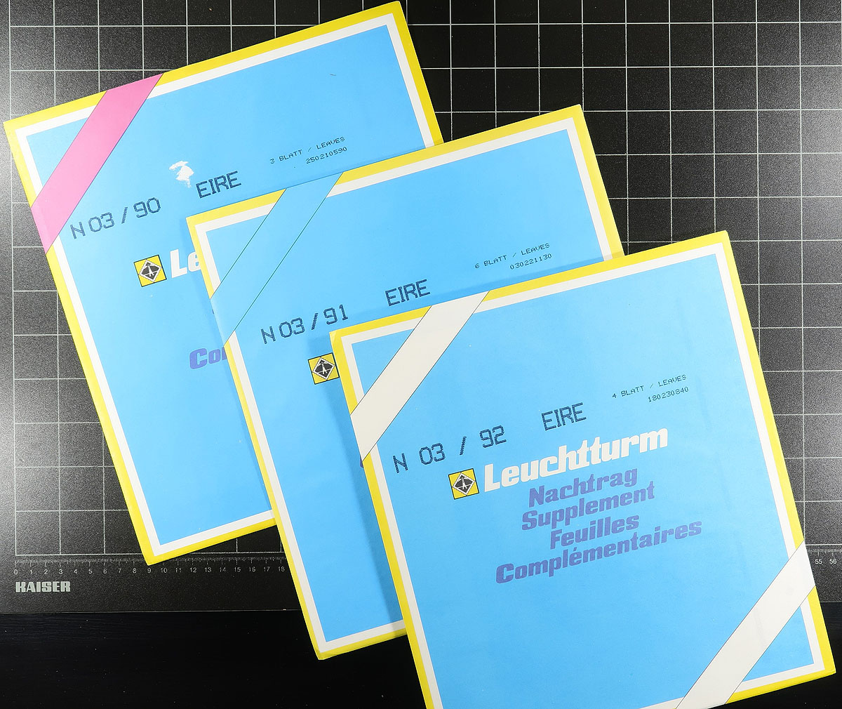 Supplies. Lovely "like new" Lighthouse brand Ireland album with hingeless pages from 1922-1994, all in a turn-post style padded album in dark green, also including blank pages. A lovely album which retails several hundreds of dollars and should be well worth our estimate. Estimate =
