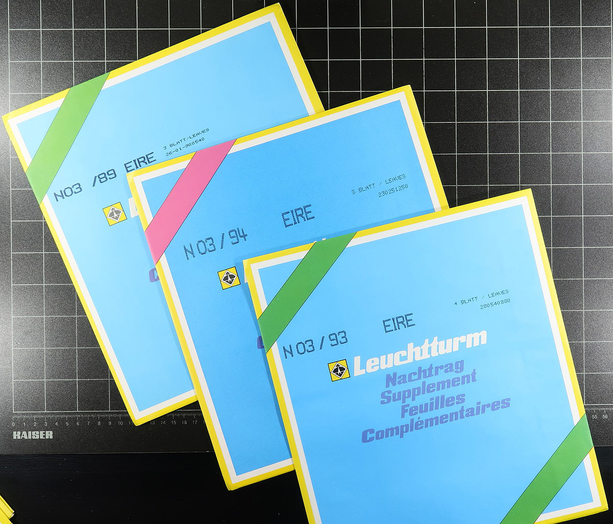Supplies. Lovely "like new" Lighthouse brand Ireland album with hingeless pages from 1922-1994, all in a turn-post style padded album in dark green, also including blank pages. A lovely album which retails several hundreds of dollars and should be well worth our estimate. Estimate =