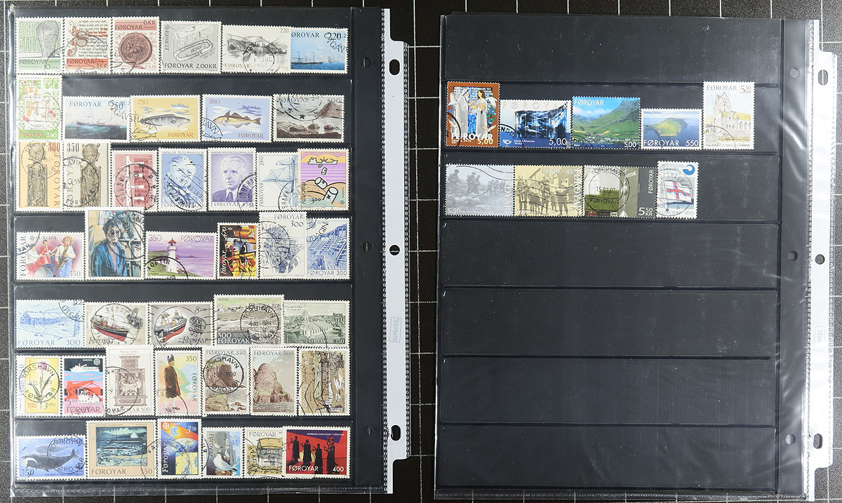 Very nice group of used Faroe Islands, 1975-2004, containing a few hundred stamps in roughly 13 stock pages. The lot generally ranges from Scott #7/439, containing singles and a handful of booklets with canceled stamps inside. A spot check indicated some items cataloguing $10 and up. It appears the used stamps have cto cancels, still a clean lot from this popular collecting country. Owner's older 2016 Scott US$885.00 =