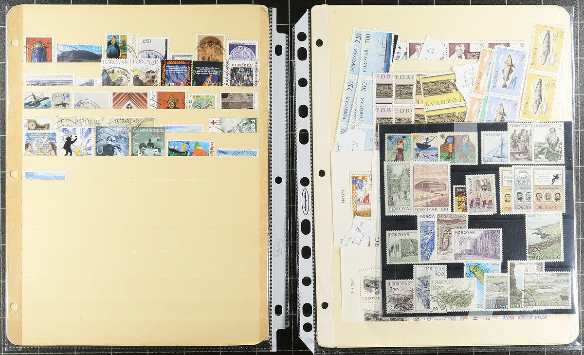 Very nice group of used Faroe Islands, 1975-2004, containing a few hundred stamps in roughly 13 stock pages. The lot generally ranges from Scott #7/439, containing singles and a handful of booklets with canceled stamps inside. A spot check indicated some items cataloguing $10 and up. It appears the used stamps have cto cancels, still a clean lot from this popular collecting country. Owner's older 2016 Scott US$885.00 =