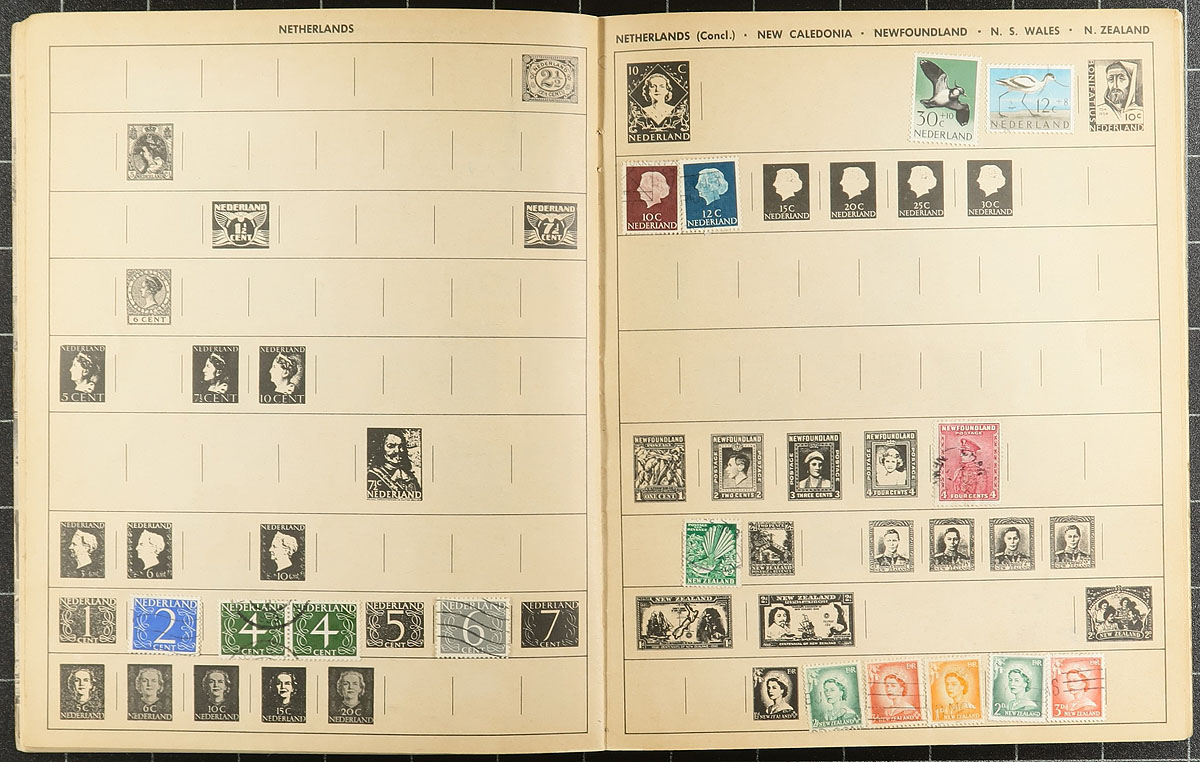 Accumulation of many thousands of stamps filling a bankers box. We note a wide variety of material within, mainly in manila or album pages, along with glassines, few albums, baggies, and more. The majority of material appears to be European in nature (including some pre-1900 France), along with South America, and more, generally ranging from 1900 onwards. A nice project for the worldwide collector, with potential finds possible. Overall fine to very fine. Estimate =