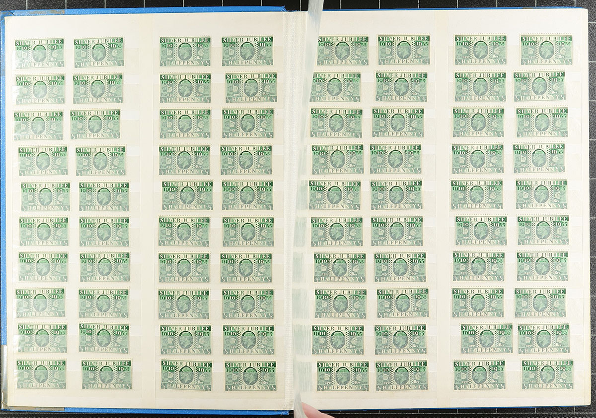 Accumulation of many thousands of stamps filling a bankers box. We note a wide variety of material within, mainly in manila or album pages, along with glassines, few albums, baggies, and more. The majority of material appears to be European in nature (including some pre-1900 France), along with South America, and more, generally ranging from 1900 onwards. A nice project for the worldwide collector, with potential finds possible. Overall fine to very fine. Estimate =