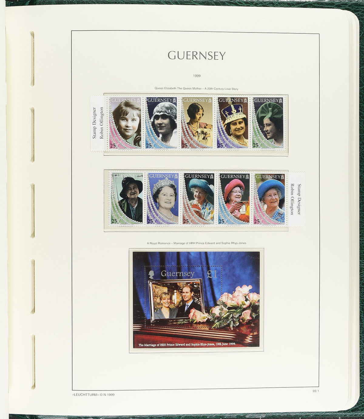 Lovely never hinged collection of Guernsey, 1941-2006, containing roughly 1,250 stamps in two Lighthouse albums with hingeless pages and two slipcases. The collection ranges from Scott #N1/892, containing several sets, and many souvenir sheets, with a spot check indicating some material cataloguing from $5 to $15 each. Owner's Scott 2026 catalogue value for the collection totals US$1,227.00 and the albums alone would retail for several hundred dollars. A lovely lot that should be continued until completion. Estimate =