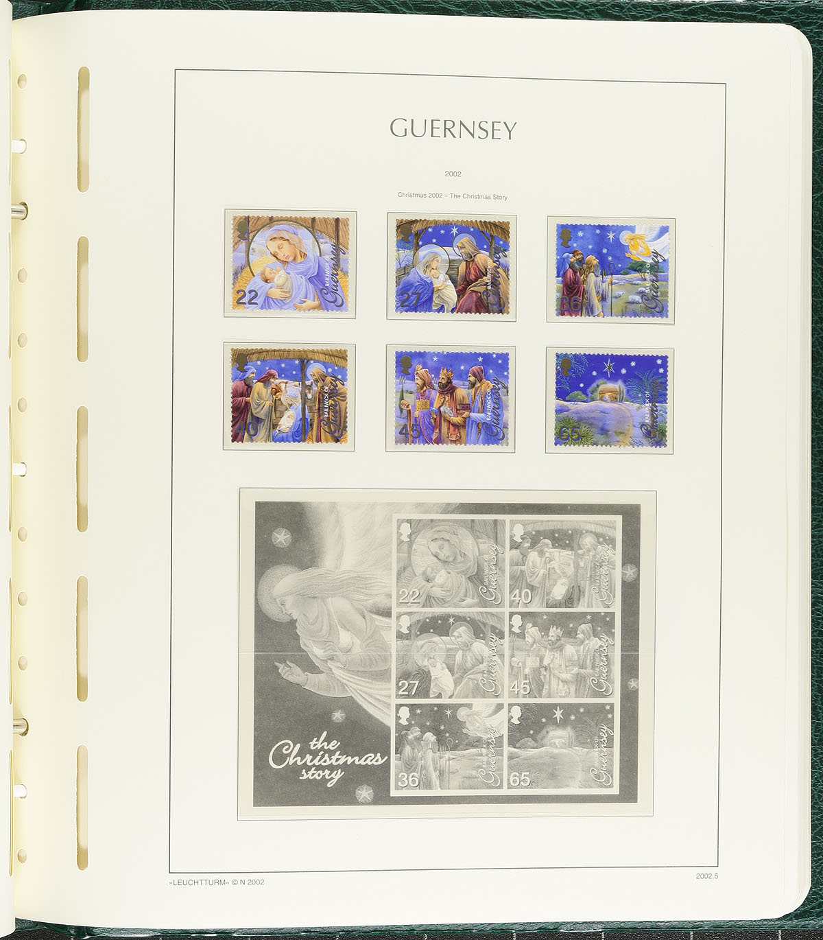 Lovely never hinged collection of Guernsey, 1941-2006, containing roughly 1,250 stamps in two Lighthouse albums with hingeless pages and two slipcases. The collection ranges from Scott #N1/892, containing several sets, and many souvenir sheets, with a spot check indicating some material cataloguing from $5 to $15 each. Owner's Scott 2026 catalogue value for the collection totals US$1,227.00 and the albums alone would retail for several hundred dollars. A lovely lot that should be continued until completion. Estimate =