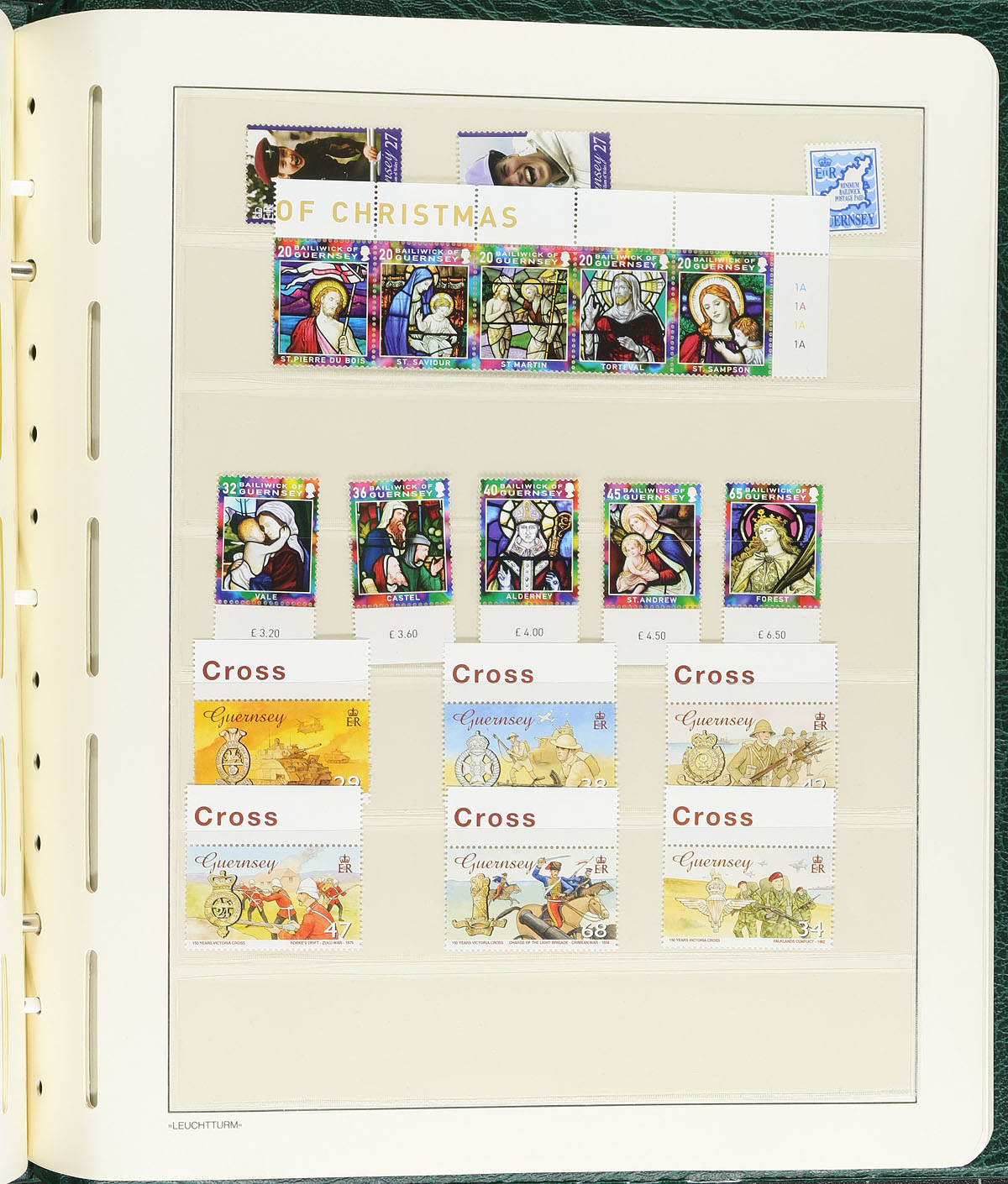 Lovely never hinged collection of Guernsey, 1941-2006, containing roughly 1,250 stamps in two Lighthouse albums with hingeless pages and two slipcases. The collection ranges from Scott #N1/892, containing several sets, and many souvenir sheets, with a spot check indicating some material cataloguing from $5 to $15 each. Owner's Scott 2026 catalogue value for the collection totals US$1,227.00 and the albums alone would retail for several hundred dollars. A lovely lot that should be continued until completion. Estimate =