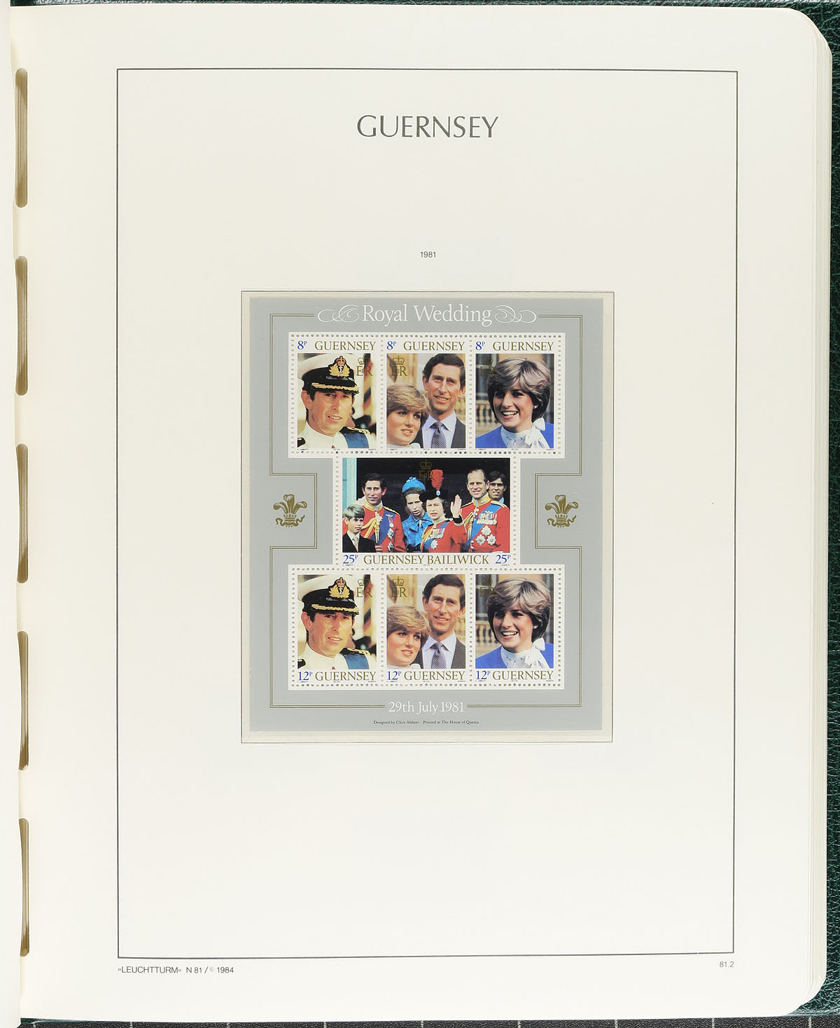 Lovely never hinged collection of Guernsey, 1941-2006, containing roughly 1,250 stamps in two Lighthouse albums with hingeless pages and two slipcases. The collection ranges from Scott #N1/892, containing several sets, and many souvenir sheets, with a spot check indicating some material cataloguing from $5 to $15 each. Owner's Scott 2026 catalogue value for the collection totals US$1,227.00 and the albums alone would retail for several hundred dollars. A lovely lot that should be continued until completion. Estimate =