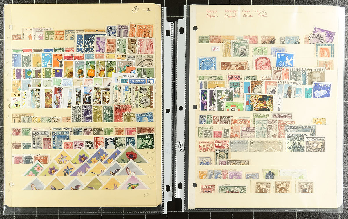 Nice accumulation of a few thousand worldwide used stamps in roughly 20 stock or album pages. We note almost all European material including Switzerland, France, Germany, Spain and much more. The majority of material appears to range from the 1920's to the 1970's, with material possible on either side of the given range. A nice group for the worldwide collector looking to fill spots, overall fine to very fine. Owner's older 2013 Scott US$1,309.00 =