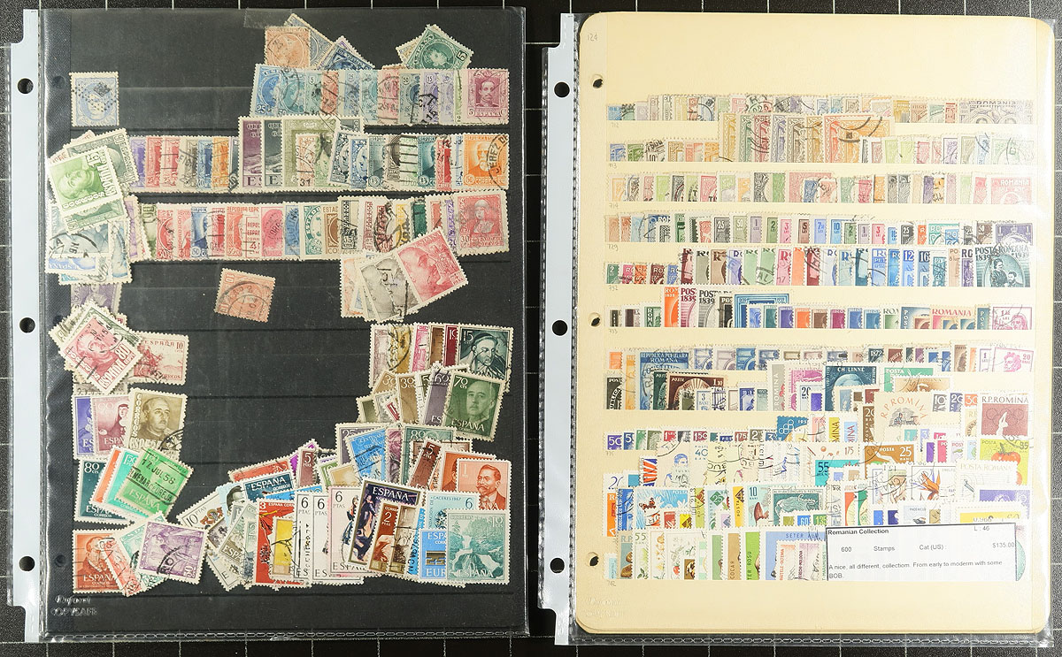 Nice accumulation of a few thousand worldwide used stamps in roughly 20 stock or album pages. We note almost all European material including Switzerland, France, Germany, Spain and much more. The majority of material appears to range from the 1920's to the 1970's, with material possible on either side of the given range. A nice group for the worldwide collector looking to fill spots, overall fine to very fine. Owner's older 2013 Scott US$1,309.00 =