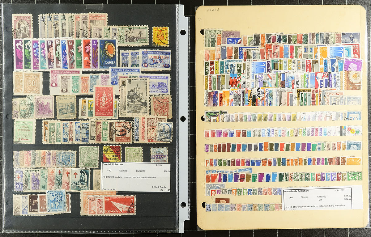 Nice accumulation of a few thousand worldwide used stamps in roughly 20 stock or album pages. We note almost all European material including Switzerland, France, Germany, Spain and much more. The majority of material appears to range from the 1920's to the 1970's, with material possible on either side of the given range. A nice group for the worldwide collector looking to fill spots, overall fine to very fine. Owner's older 2013 Scott US$1,309.00 =