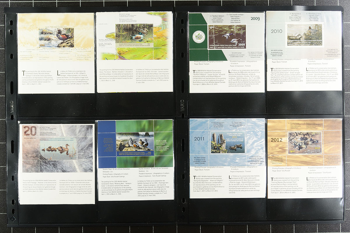 Federal Wildlife Habitat Conservation booklets, 1985-2018, with 36 in total from years 1985 (x2), 1986-1987, 1988 (x2), 1989-2001, 2003-2004, 2005 (x2), 2006-2018. A lovely lot for booklet, thematic and topical collectors, noting that the collection would benefit from re-mounting as the pockets are rather tight for the booklets. Clean and very fine. 2025-2026 Unitrade =