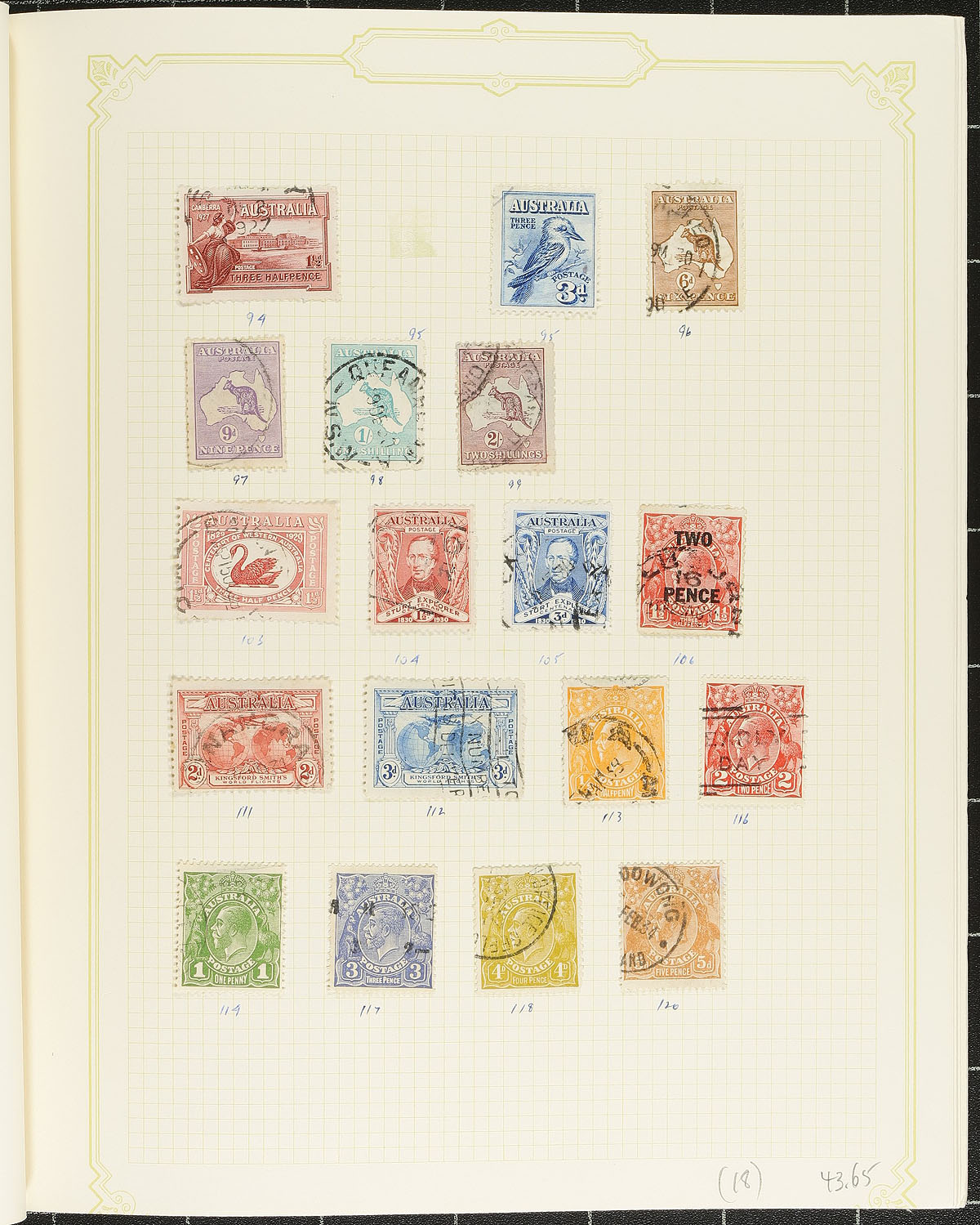 Collection / accumulation of used Australia, 1913-2002, containing over 1,500 stamps on many album pages. This fairly well organized collection generally ranges from Scott #2/2078, containing sets, a small selection of Kangaroos and KGV Heads, airmails and other back of the book issues. A nice starter collection from this very popular collecting region. Owner's older 2013 Scott US$1,602.00 =