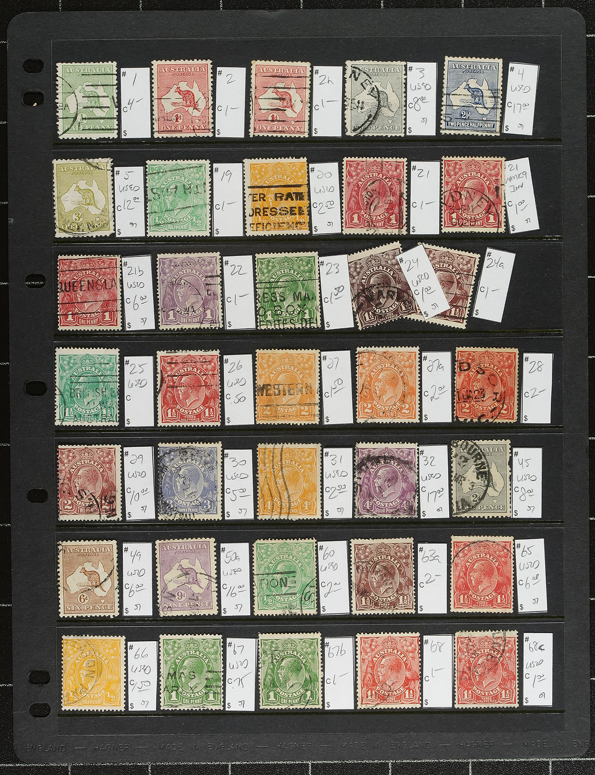 Accumulation of used Australia, 1913-2016, containing over 2,500 stamps in several stock pages and a stockbook. This fairly well organized lot generally ranges from Scott #1/4575, containing a selection of Kangaroos and KGV Heads, modern and back of the book issues, and a few Australian States stamps. A spot check indicated some issues cataloguing $10 to $20 and up. A nice lot with finds for the dedicated collector from this popular collecting country. A few small faults to be expected, overall fine to very fine. Owner's older 2018 Scott US$1,940.00 =
