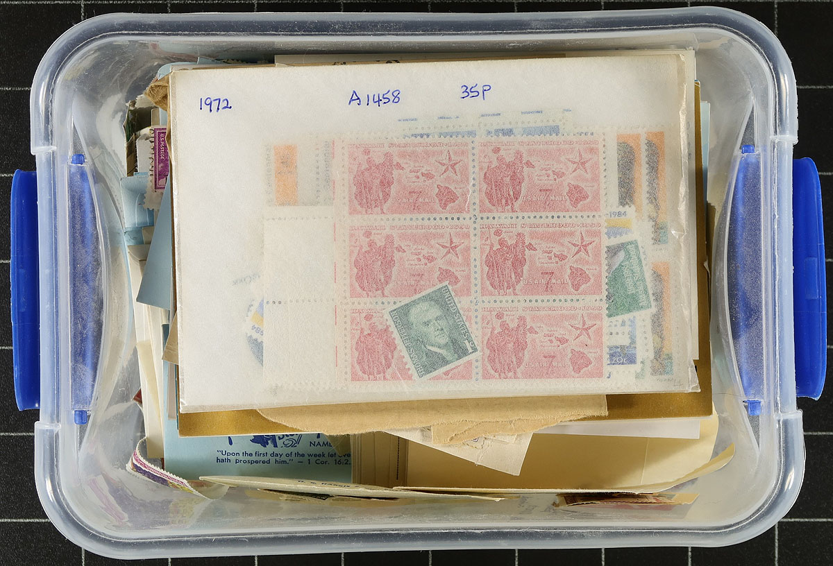 Carton full of "one person's collection" containing a few thousand mint and used worldwide stamps. A cursory check indicated a wide range of material including 4 stockbooks, a few albums, loose pages and much more, including a small collection of classic Japan (Scott 2026 catalogue value over $200), Australia used in a stockbook, mint British Commonwealth and European material, used Germany and Eastern Europe, and so much more. Most of the material ranges from the 1920s onwards, and there should be some finds for the dedicated collector. A nice project for the worldwide collector. Estimate =