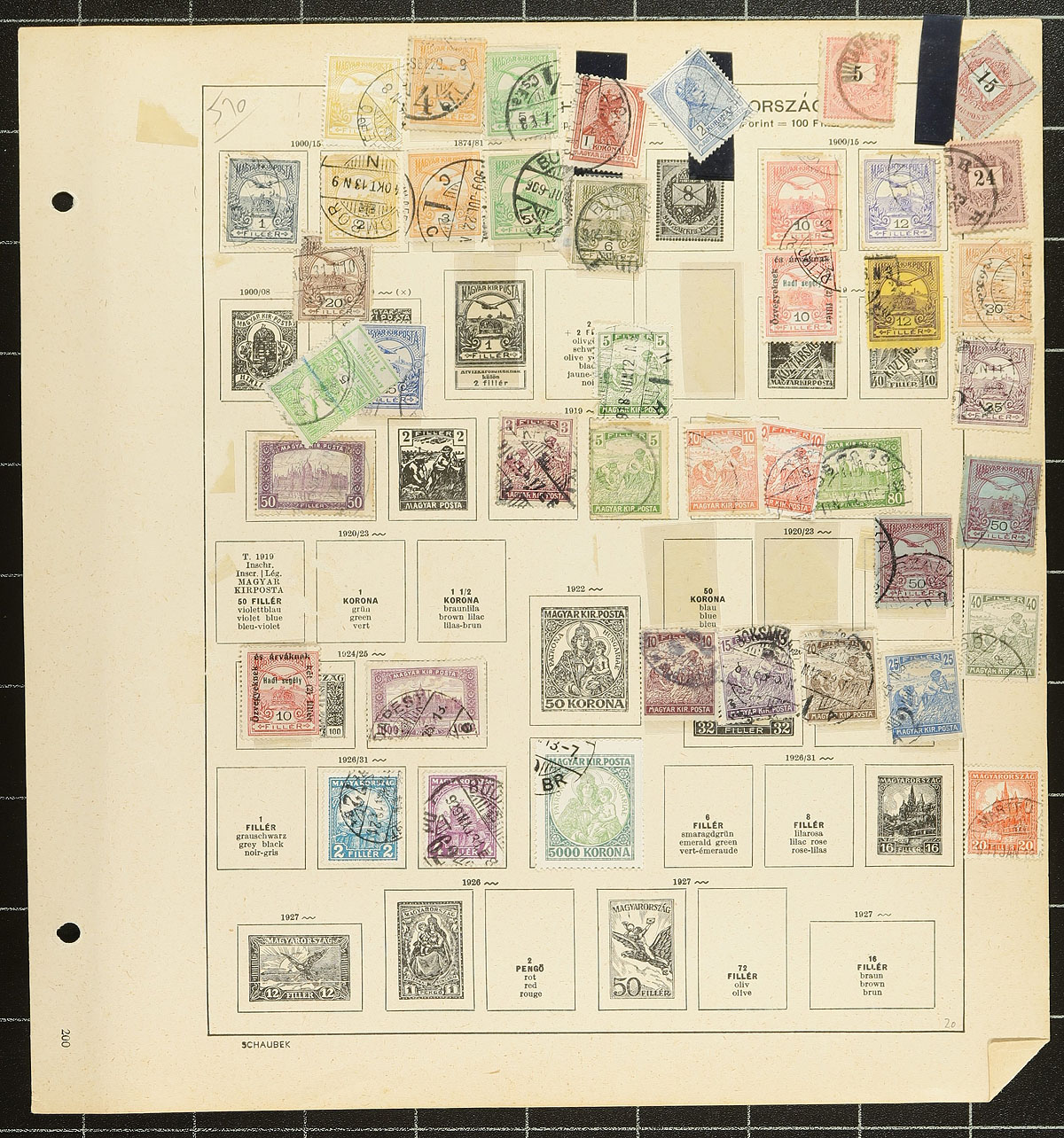 Nice collection / accumulation of primarily used Hungary, 1871-1976, containing roughly 3,000 stamps in over 100 Minkus album or stock pages. This nicely organized lot generally ranges from Scott #3/2403, containing several sets (including mint sets), and back of the book issues. A spot check indicated some items cataloguing $5 to $15 and up, including a few high value occupation stamps (if genuine). Postmark interest includes cds and a few other types, including several 'socked on the nose' town cancels. A nice lot for the Hungary or worldwide collector, overall fine to very fine. Estimate =