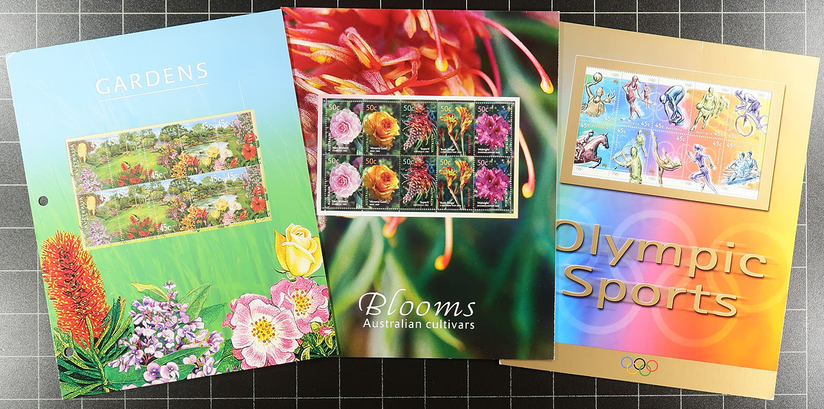 Accumulation of never hinged Australia, 1980's-2003, containing several hundreds of stamps in roughly 12 stock pages. The lot generally ranges from Scott #772/2142, containing several sets, blocks, souvenir sheets, and presentation packs. A spot check indicated some items cataloguing $10 to $15 and up each, with only a portion of the lot catalogued by the owner using a Scott 2018 catalogue totaling $729.00. Face value alone is AUD$575.00. A lovely lot for the Australia or worldwide mint collector, or the postage user. A very fine lot. Estimate =