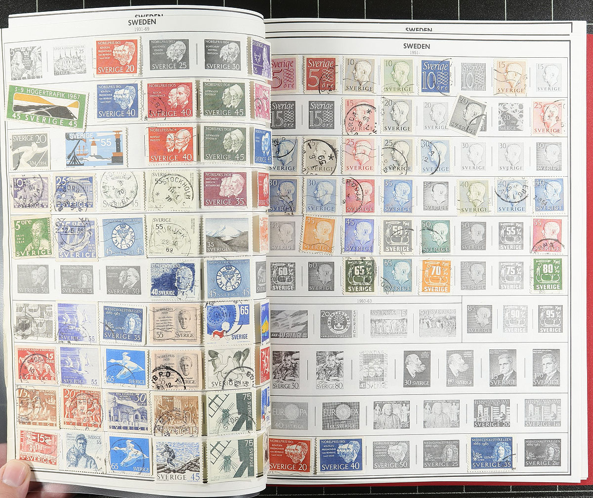 Accumulation of primarily used Sweden, 1970's-1980's, containing many hundreds of stamps in several loose album or stock pages and a binder. The lot is fairly well organized generally ranging from Scott #31/1550a, containing sets, blocks, mint complete booklet panes, and more. A spot check indicated some material ranging from $5 and up, with the owner's 2018 Scott catalogue value totaling US$790.00. A good starter lot that should be continued, overall fine to very fine. Estimate =