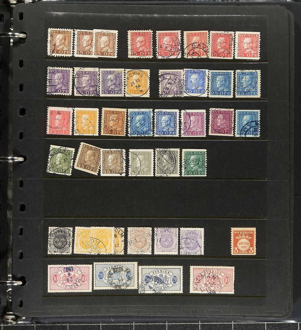 Accumulation of primarily used Sweden, 1970's-1980's, containing many hundreds of stamps in several loose album or stock pages and a binder. The lot is fairly well organized generally ranging from Scott #31/1550a, containing sets, blocks, mint complete booklet panes, and more. A spot check indicated some material ranging from $5 and up, with the owner's 2018 Scott catalogue value totaling US$790.00. A good starter lot that should be continued, overall fine to very fine. Estimate =