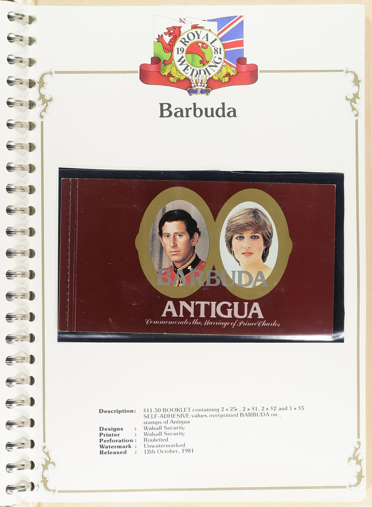 British Commonwealth Topical Collection. Charles and Diana Royal Wedding in 4 volumes (3 with slipcases). The collection includes 3 specially prepared Stanley Gibbons albums, a few hundred stamps containing sets, souvenir sheets, booklets, along with imperforates, and some varieties, from A to G issuing countries. The lot also includes a 4th volume of similar material all relating to the 1981 Royal Wedding. A lovely collection with the owner's older Scott catalogue value at US$530.00 (Stanley Gibbons albums only), making this a nice lot for collectors and dealers alike. Estimate =