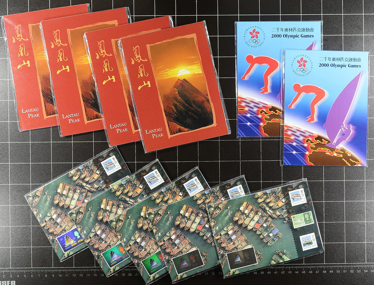 Accumulation of roughly 200 first day covers and postcards, 1980's-2000. This clean lot includes roughly 150 Hong Kong prepaid postcards, many still in the original packing, noting a few different postcard series with an original price totaling $925.00 Hong Kong dollars, along with a mixture of Hong Kong and People's Republic of China first day covers, including a few lunar new year issues from 1981 and 1982, with a few items cataloguing $5 and up. Duplication ranges from 5 to 10 per issue, still a very clean lot ideal for collectors and dealers alike. Estimate =