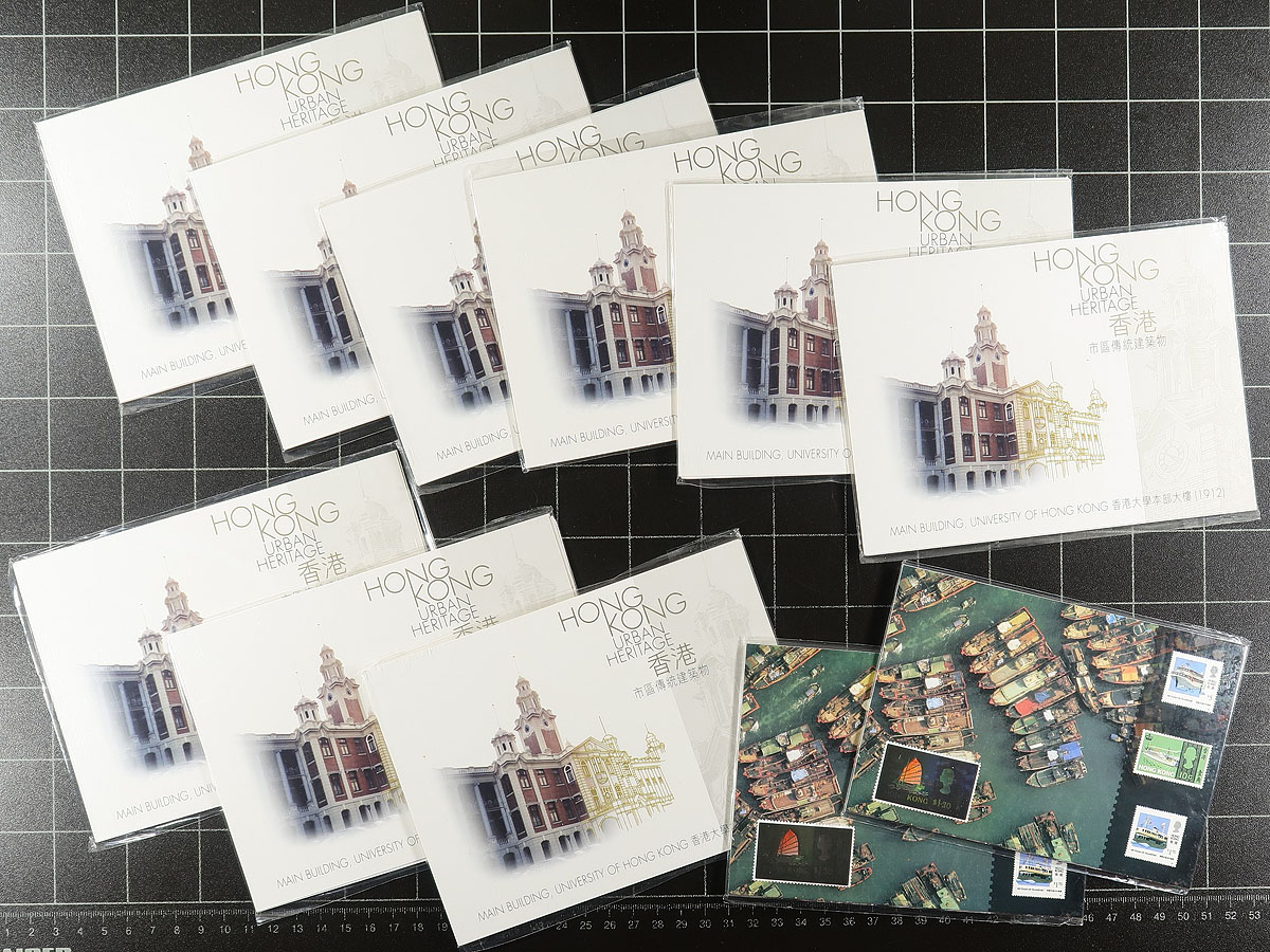 Accumulation of roughly 200 first day covers and postcards, 1980's-2000. This clean lot includes roughly 150 Hong Kong prepaid postcards, many still in the original packing, noting a few different postcard series with an original price totaling $925.00 Hong Kong dollars, along with a mixture of Hong Kong and People's Republic of China first day covers, including a few lunar new year issues from 1981 and 1982, with a few items cataloguing $5 and up. Duplication ranges from 5 to 10 per issue, still a very clean lot ideal for collectors and dealers alike. Estimate =