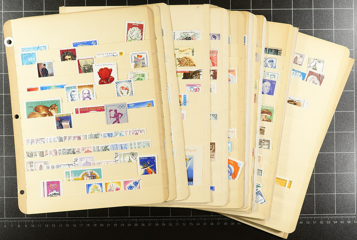 Europea accumulations of several thousands of primarily used stamps from European countries. The lot consists of material from Poland, Romania, Czechoslovakia, Bulgaria, Germany, and the Netherlands, generally ranging from the 1890's to the 1970's, in a few hundred album, manilla, or stock pages. Most of the material has been catalogued by the owner using a 2009 Scott catalogue value totals US$1,051.00 ($1418.85 CDN), leaving better finds for the dedicated collector. A nice large lot for the worldwide collector, overall fine to very fine. Estimate =