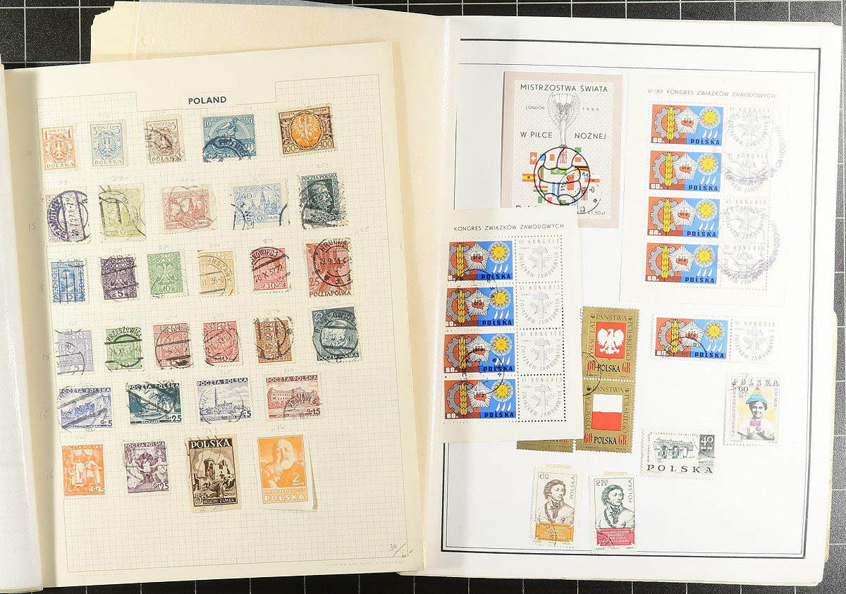Europea accumulations of several thousands of primarily used stamps from European countries. The lot consists of material from Poland, Romania, Czechoslovakia, Bulgaria, Germany, and the Netherlands, generally ranging from the 1890's to the 1970's, in a few hundred album, manilla, or stock pages. Most of the material has been catalogued by the owner using a 2009 Scott catalogue value totals US$1,051.00 ($1418.85 CDN), leaving better finds for the dedicated collector. A nice large lot for the worldwide collector, overall fine to very fine. Estimate =