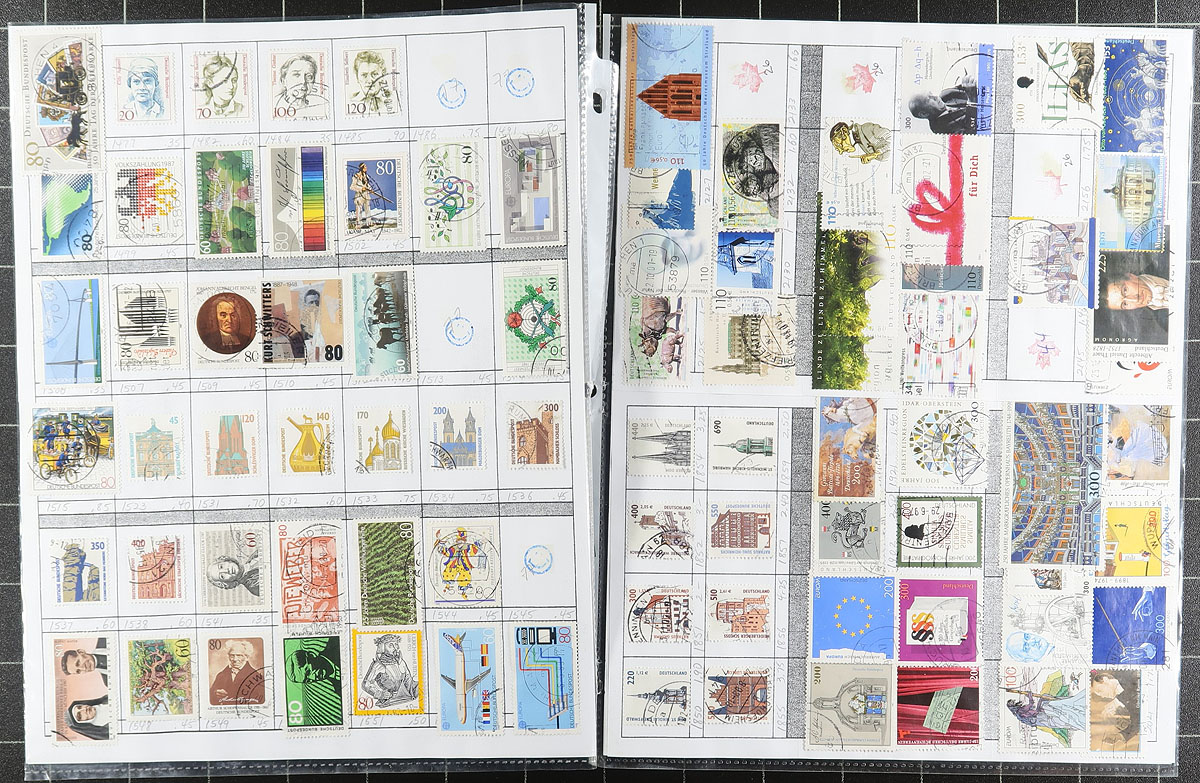 Nice collection / accumulation of used Germany, 1875-2008, containing over 2,000 stamps on over 100 album or stock pages. This fairly organized lot generally ranges from Scott #31/2494, containing sets, semi-postals, and other back of the book issues, along with some Berlin and perhaps DDR material. The majority of the lot is found within the stock pages, and continues with a nice run of stamps from the 1980s to the 1990s in several KABE album pages. Owner's 2018 Scott catalogue value for the lot totals US$2,239.00 ($3,022.65 CDN), leaving better finds to the dedicated collector. A nice lot, with a few small faults noted with a few earlier issues, overall fine to very fine. Estimate =