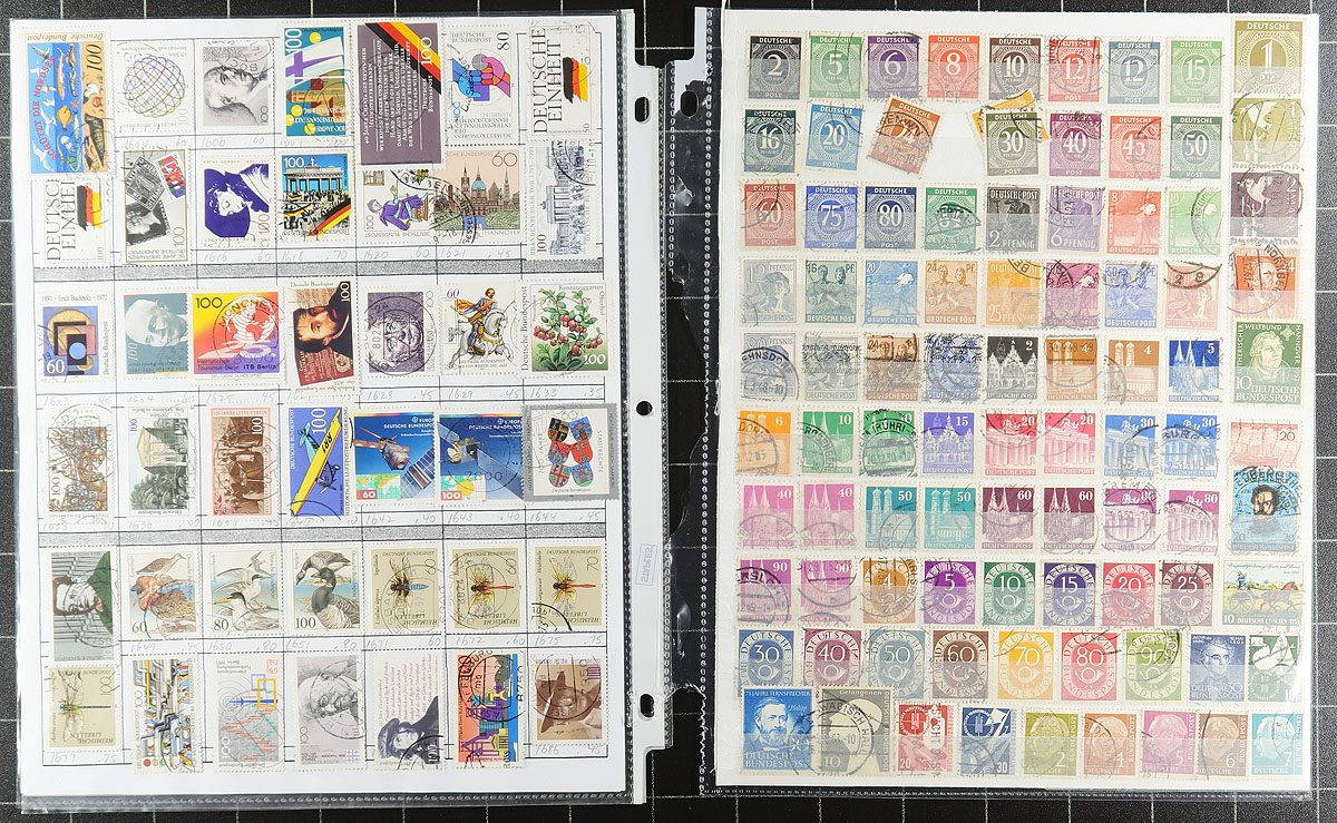 Nice collection / accumulation of used Germany, 1875-2008, containing over 2,000 stamps on over 100 album or stock pages. This fairly organized lot generally ranges from Scott #31/2494, containing sets, semi-postals, and other back of the book issues, along with some Berlin and perhaps DDR material. The majority of the lot is found within the stock pages, and continues with a nice run of stamps from the 1980s to the 1990s in several KABE album pages. Owner's 2018 Scott catalogue value for the lot totals US$2,239.00 ($3,022.65 CDN), leaving better finds to the dedicated collector. A nice lot, with a few small faults noted with a few earlier issues, overall fine to very fine. Estimate =