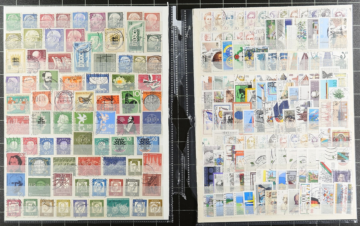 Nice collection / accumulation of used Germany, 1875-2008, containing over 2,000 stamps on over 100 album or stock pages. This fairly organized lot generally ranges from Scott #31/2494, containing sets, semi-postals, and other back of the book issues, along with some Berlin and perhaps DDR material. The majority of the lot is found within the stock pages, and continues with a nice run of stamps from the 1980s to the 1990s in several KABE album pages. Owner's 2018 Scott catalogue value for the lot totals US$2,239.00 ($3,022.65 CDN), leaving better finds to the dedicated collector. A nice lot, with a few small faults noted with a few earlier issues, overall fine to very fine. Estimate =