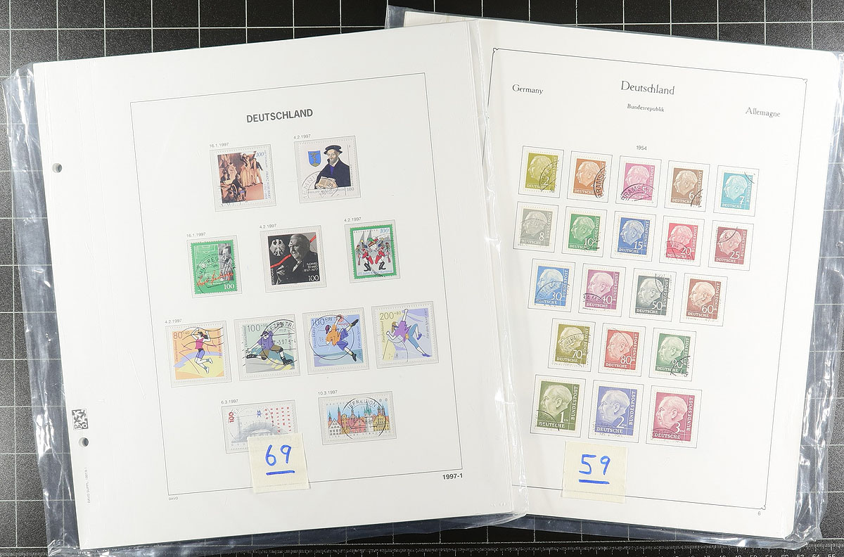 Nice collection / accumulation of used Germany, 1875-2008, containing over 2,000 stamps on over 100 album or stock pages. This fairly organized lot generally ranges from Scott #31/2494, containing sets, semi-postals, and other back of the book issues, along with some Berlin and perhaps DDR material. The majority of the lot is found within the stock pages, and continues with a nice run of stamps from the 1980s to the 1990s in several KABE album pages. Owner's 2018 Scott catalogue value for the lot totals US$2,239.00 ($3,022.65 CDN), leaving better finds to the dedicated collector. A nice lot, with a few small faults noted with a few earlier issues, overall fine to very fine. Estimate =