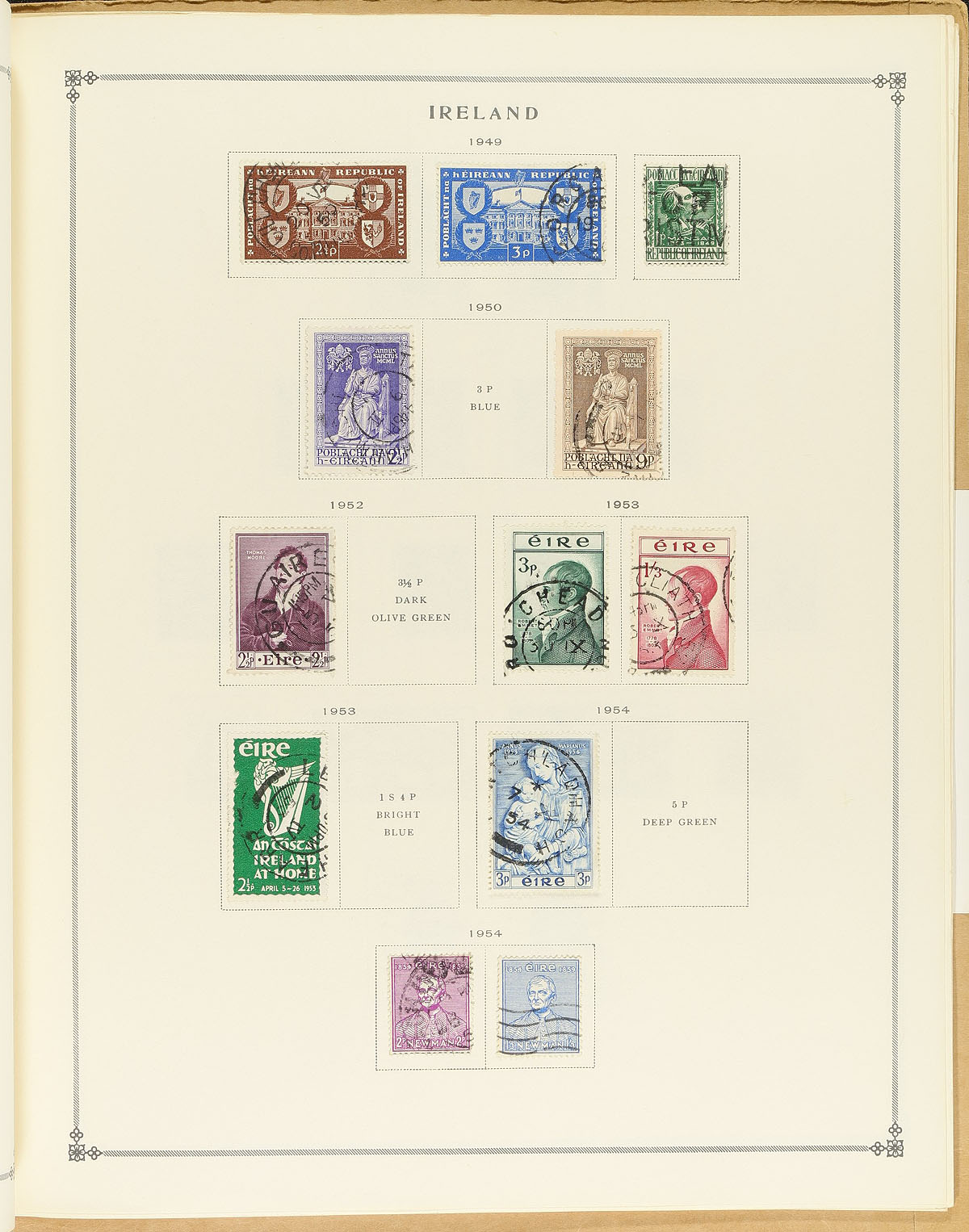 Collection / accumulation of primarily used Ireland, 1922-2010, containing over 1,700 stamps in roughly 20 stock or album pages. The lot generally ranges from Scott #1/1873, containing sets, airmails and other back of the book issues. A spot check a few singles and sets cataloguing $10 and up each. Owner's 2009 Scott catalogue value for the lot totals US$1,374.00 ($1,854.90 CDN), leaving better finds for the dedicated collector. A nice lot for the Ireland or worldwide collector, overall fine to very fine. Estimate =