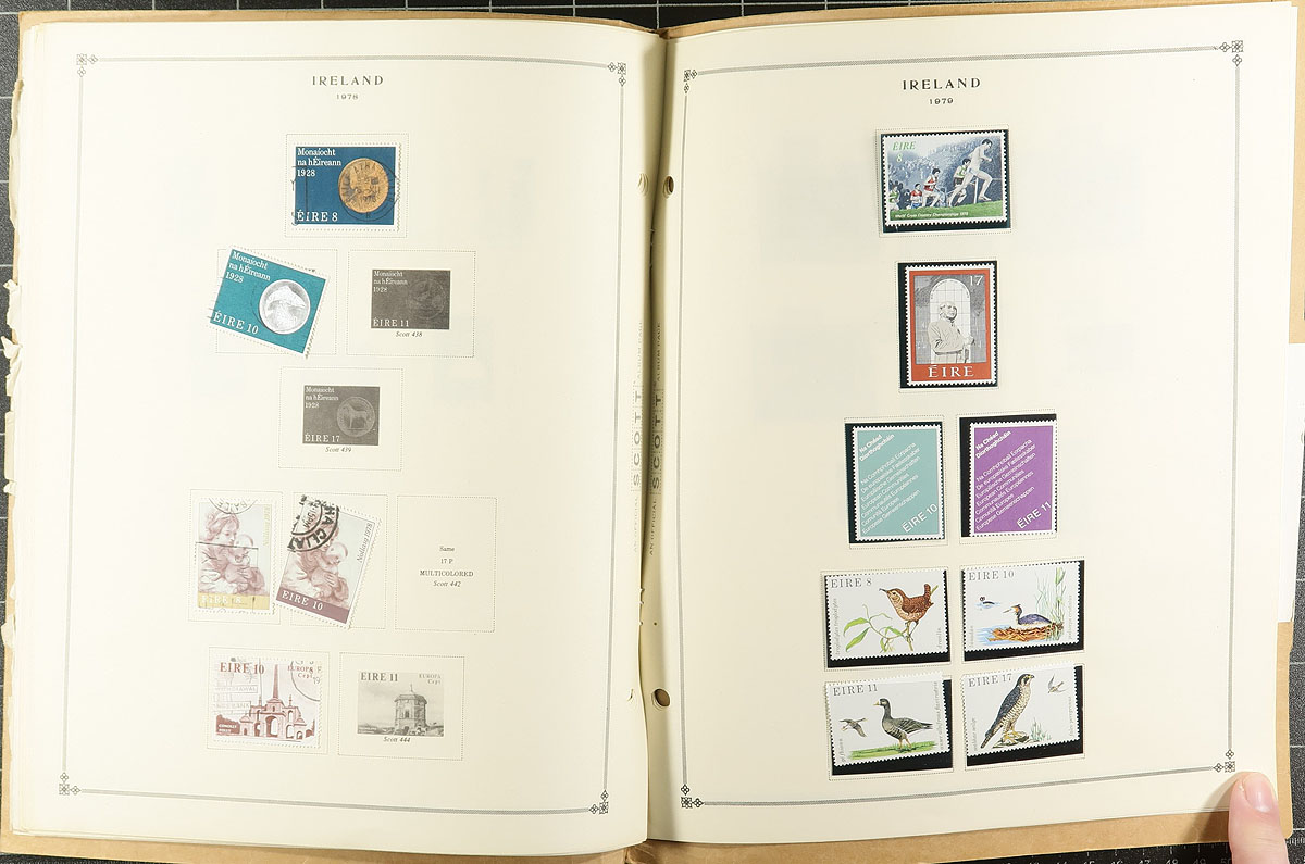 Collection / accumulation of primarily used Ireland, 1922-2010, containing over 1,700 stamps in roughly 20 stock or album pages. The lot generally ranges from Scott #1/1873, containing sets, airmails and other back of the book issues. A spot check a few singles and sets cataloguing $10 and up each. Owner's 2009 Scott catalogue value for the lot totals US$1,374.00 ($1,854.90 CDN), leaving better finds for the dedicated collector. A nice lot for the Ireland or worldwide collector, overall fine to very fine. Estimate =