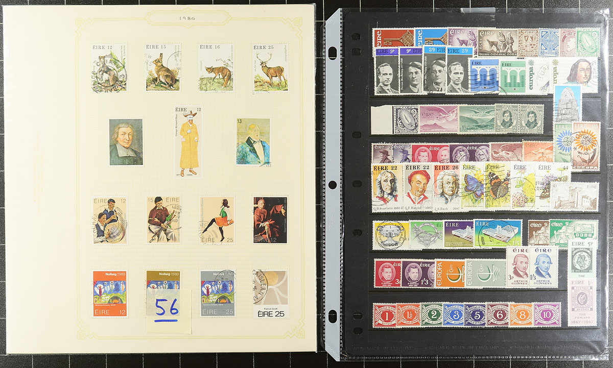 Collection / accumulation of primarily used Ireland, 1922-2010, containing over 1,700 stamps in roughly 20 stock or album pages. The lot generally ranges from Scott #1/1873, containing sets, airmails and other back of the book issues. A spot check a few singles and sets cataloguing $10 and up each. Owner's 2009 Scott catalogue value for the lot totals US$1,374.00 ($1,854.90 CDN), leaving better finds for the dedicated collector. A nice lot for the Ireland or worldwide collector, overall fine to very fine. Estimate =