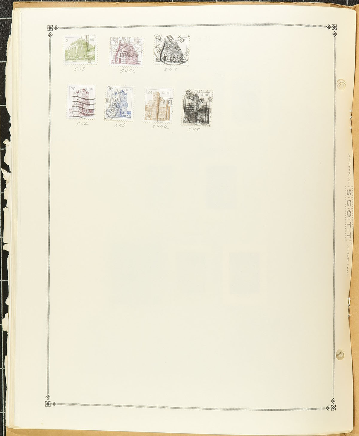 Collection / accumulation of primarily used Ireland, 1922-2010, containing over 1,700 stamps in roughly 20 stock or album pages. The lot generally ranges from Scott #1/1873, containing sets, airmails and other back of the book issues. A spot check a few singles and sets cataloguing $10 and up each. Owner's 2009 Scott catalogue value for the lot totals US$1,374.00 ($1,854.90 CDN), leaving better finds for the dedicated collector. A nice lot for the Ireland or worldwide collector, overall fine to very fine. Estimate =