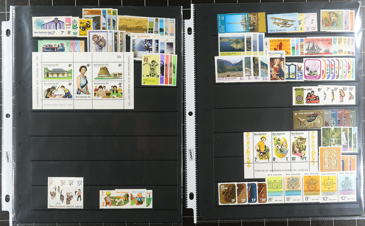 Nice collection / accumulation of primarily never hinged New Zealand, 1936-1995, containing several hundreds of stamps in roughly 30 stock pages. The lot generally ranging from Scott #219/1259, containing several sets, along with semi-postals and other back of the book issues, and a few blocks and souvenir sheets. A spot check indicated some material cataloguing $10 to $20 each, with the owner's 2013 Scott catalogue value for the lot totaling US$1,778.00 ($2,400.30 CDN). Face value alone is several hundreds of dollars. A very nice lot for the New Zealand collector, dealer looking for stock, or postage user. Clean and very fine. Estimate =