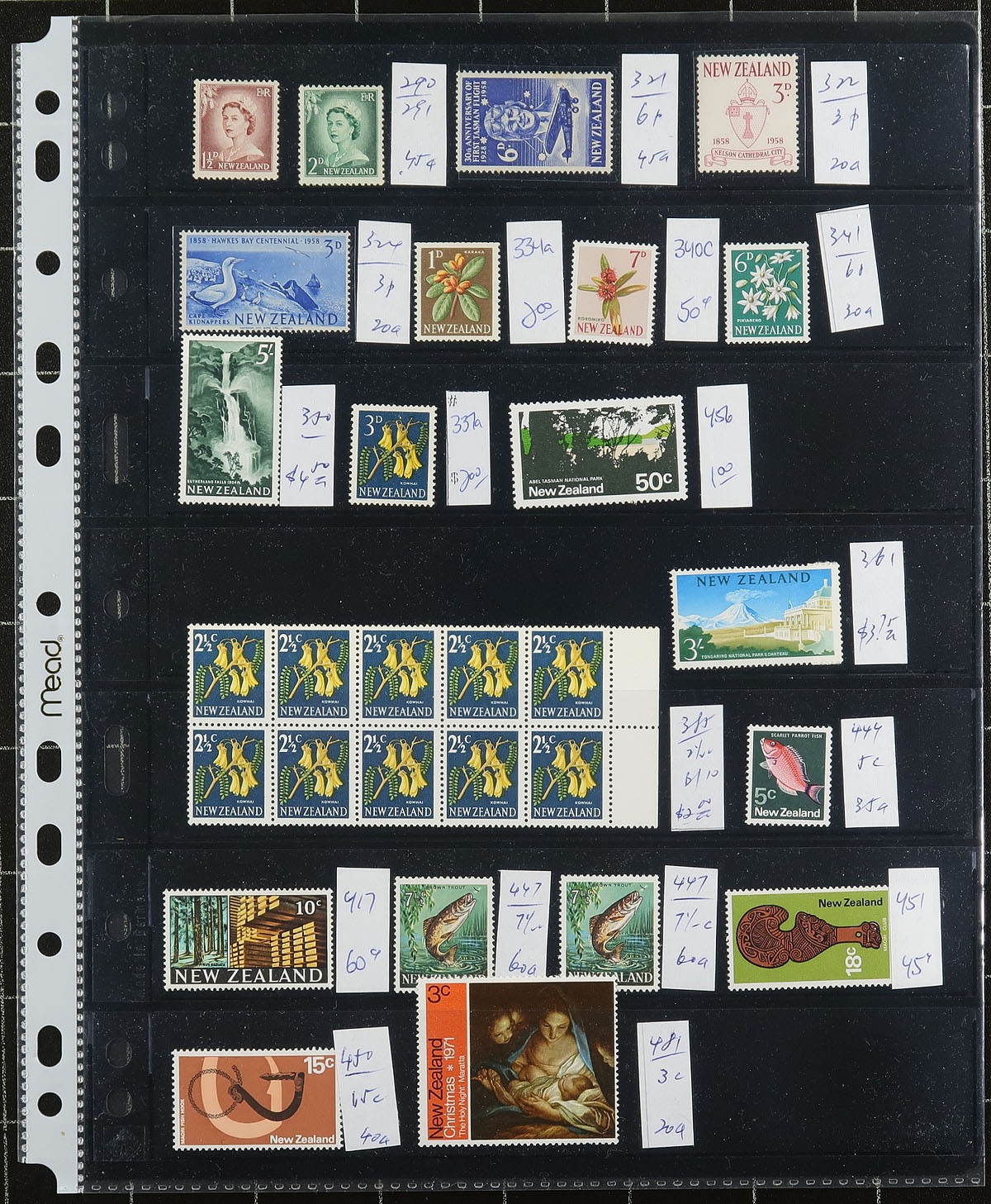 Nice collection / accumulation of primarily never hinged New Zealand, 1936-1995, containing several hundreds of stamps in roughly 30 stock pages. The lot generally ranging from Scott #219/1259, containing several sets, along with semi-postals and other back of the book issues, and a few blocks and souvenir sheets. A spot check indicated some material cataloguing $10 to $20 each, with the owner's 2013 Scott catalogue value for the lot totaling US$1,778.00 ($2,400.30 CDN). Face value alone is several hundreds of dollars. A very nice lot for the New Zealand collector, dealer looking for stock, or postage user. Clean and very fine. Estimate =