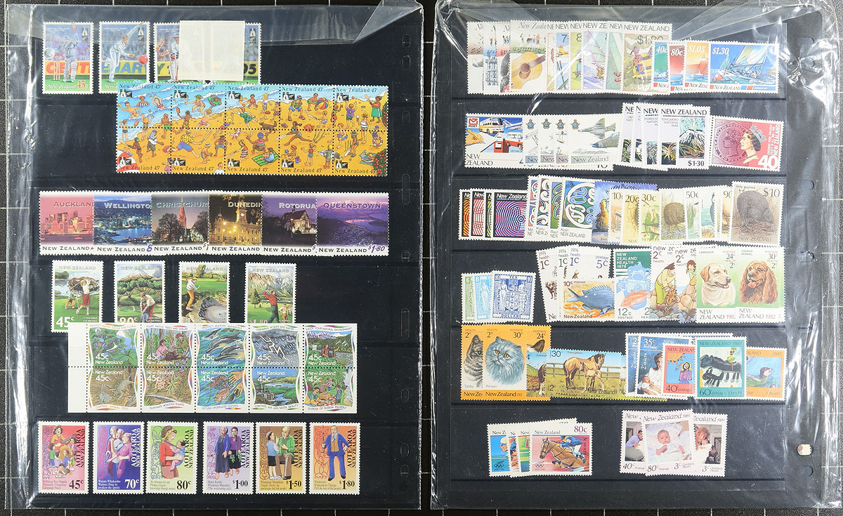 Nice collection / accumulation of primarily never hinged New Zealand, 1936-1995, containing several hundreds of stamps in roughly 30 stock pages. The lot generally ranging from Scott #219/1259, containing several sets, along with semi-postals and other back of the book issues, and a few blocks and souvenir sheets. A spot check indicated some material cataloguing $10 to $20 each, with the owner's 2013 Scott catalogue value for the lot totaling US$1,778.00 ($2,400.30 CDN). Face value alone is several hundreds of dollars. A very nice lot for the New Zealand collector, dealer looking for stock, or postage user. Clean and very fine. Estimate =