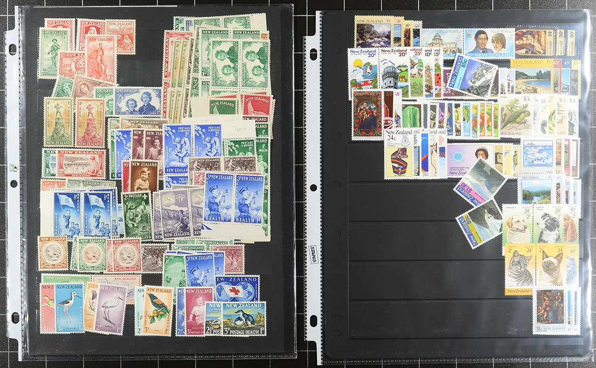 Nice collection / accumulation of primarily never hinged New Zealand, 1936-1995, containing several hundreds of stamps in roughly 30 stock pages. The lot generally ranging from Scott #219/1259, containing several sets, along with semi-postals and other back of the book issues, and a few blocks and souvenir sheets. A spot check indicated some material cataloguing $10 to $20 each, with the owner's 2013 Scott catalogue value for the lot totaling US$1,778.00 ($2,400.30 CDN). Face value alone is several hundreds of dollars. A very nice lot for the New Zealand collector, dealer looking for stock, or postage user. Clean and very fine. Estimate =