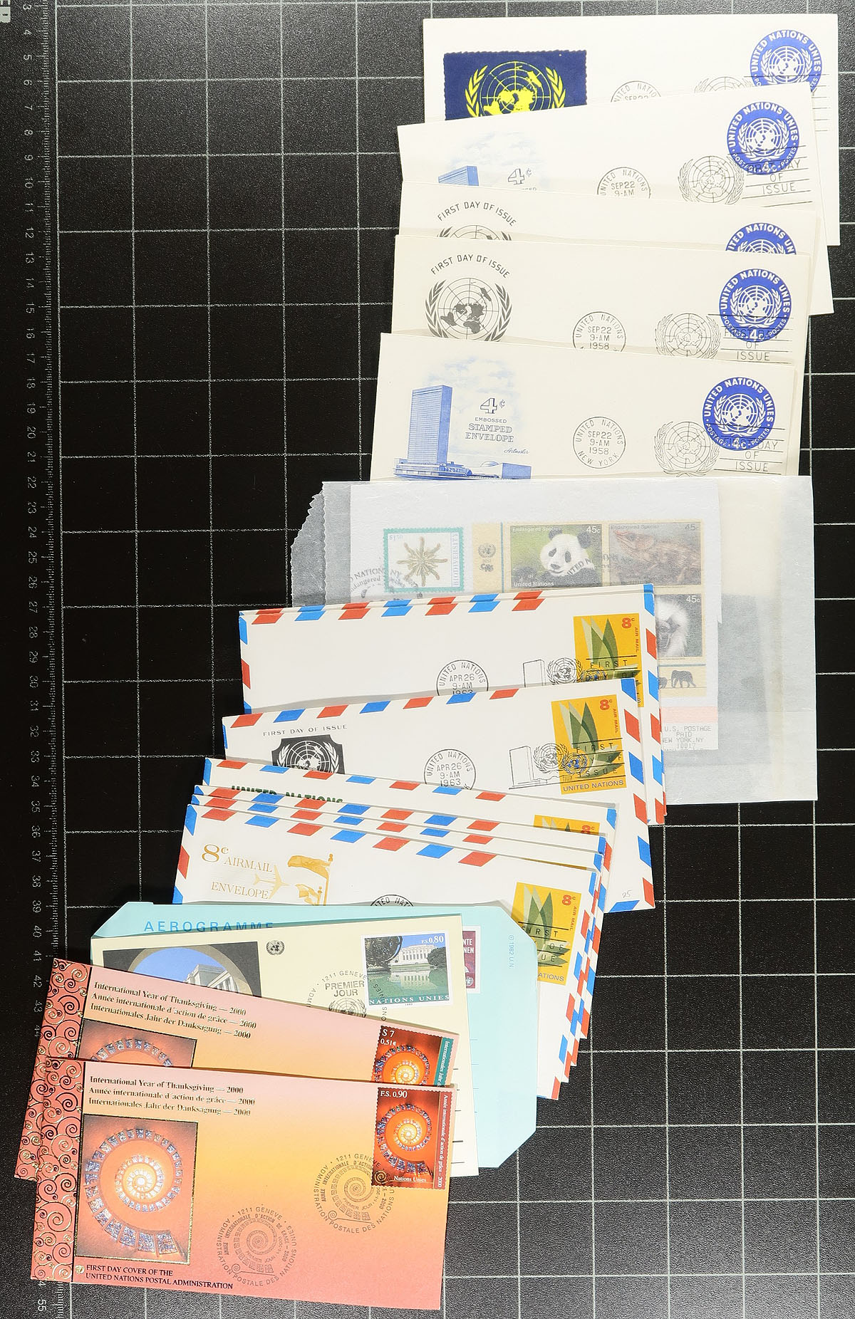 Nice group of roughly 600 first day covers, 1950's-1990's, noting singles, sets, blocks, plate blocks, and souvenir sheet frankings. A nice lot for cover collectors and thematic / topical specialists as we encountered several suitable subjects, and various cachets for some issues. Overall fine to very fine. Estimate =