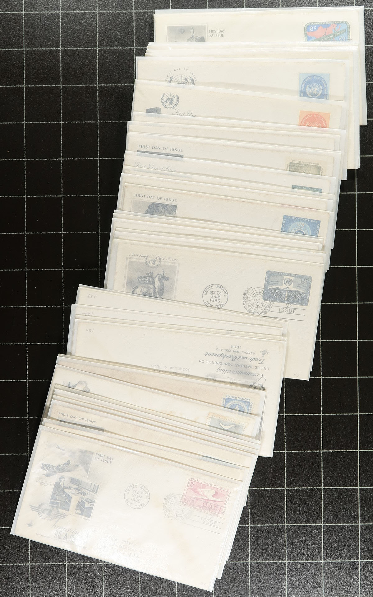 Nice group of roughly 600 first day covers, 1950's-1990's, noting singles, sets, blocks, plate blocks, and souvenir sheet frankings. A nice lot for cover collectors and thematic / topical specialists as we encountered several suitable subjects, and various cachets for some issues. Overall fine to very fine. Estimate =