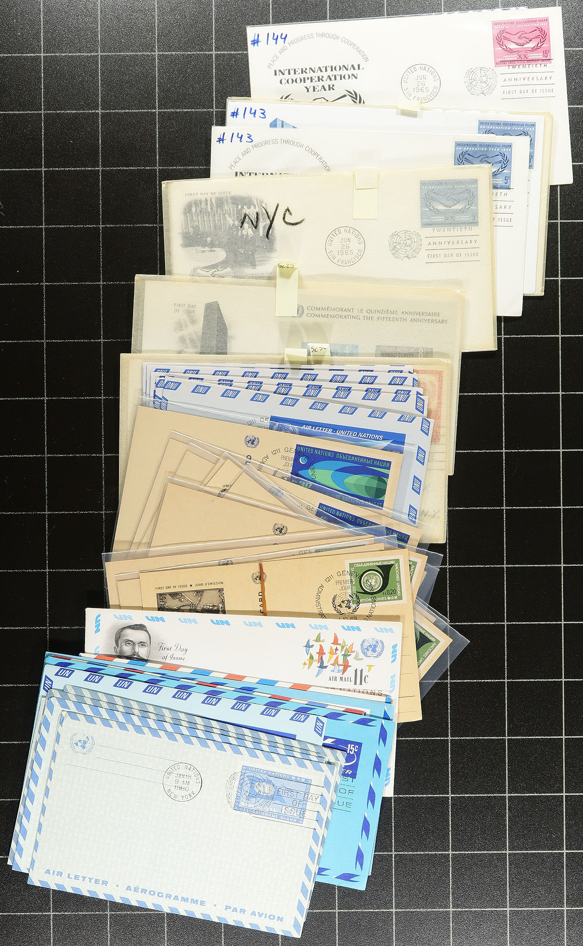 Nice group of roughly 600 first day covers, 1950's-1990's, noting singles, sets, blocks, plate blocks, and souvenir sheet frankings. A nice lot for cover collectors and thematic / topical specialists as we encountered several suitable subjects, and various cachets for some issues. Overall fine to very fine. Estimate =