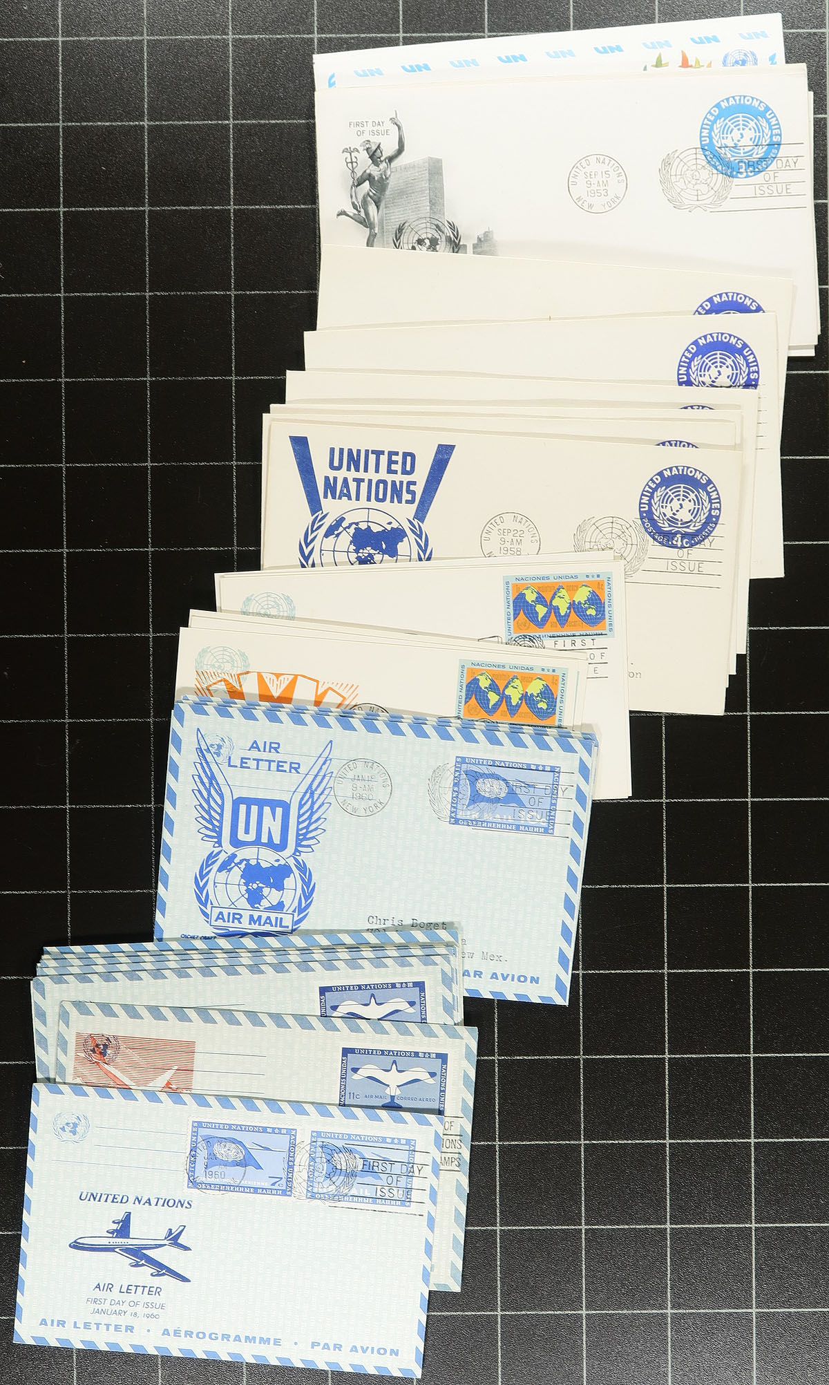 Nice group of roughly 600 first day covers, 1950's-1990's, noting singles, sets, blocks, plate blocks, and souvenir sheet frankings. A nice lot for cover collectors and thematic / topical specialists as we encountered several suitable subjects, and various cachets for some issues. Overall fine to very fine. Estimate =