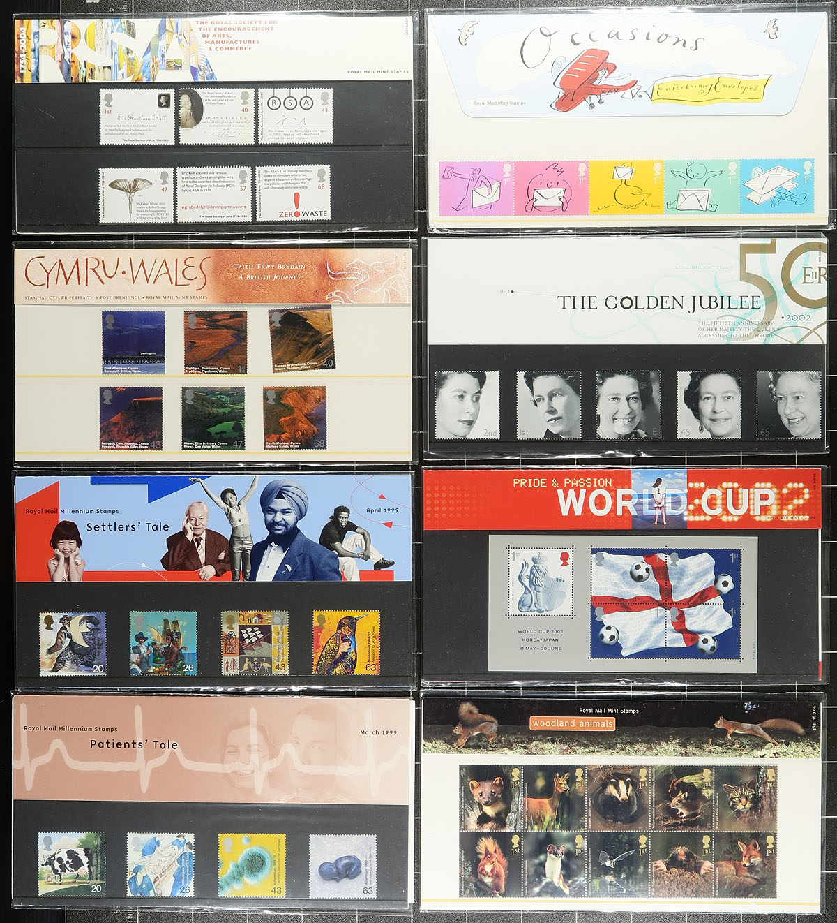 Nice collection of never hinged Great Britain in presentation packs, 91 different in total ranging from 1999 to 2005. We note several better denominations, including many "1st" issues, with face value of the lot currently at £435.00. A nice lot which will have a surprisingly good catalogue value. Clean and very fine. Estimate =