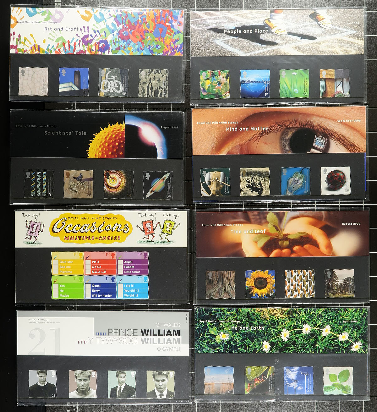 Nice collection of never hinged Great Britain in presentation packs, 91 different in total ranging from 1999 to 2005. We note several better denominations, including many "1st" issues, with face value of the lot currently at £435.00. A nice lot which will have a surprisingly good catalogue value. Clean and very fine. Estimate =