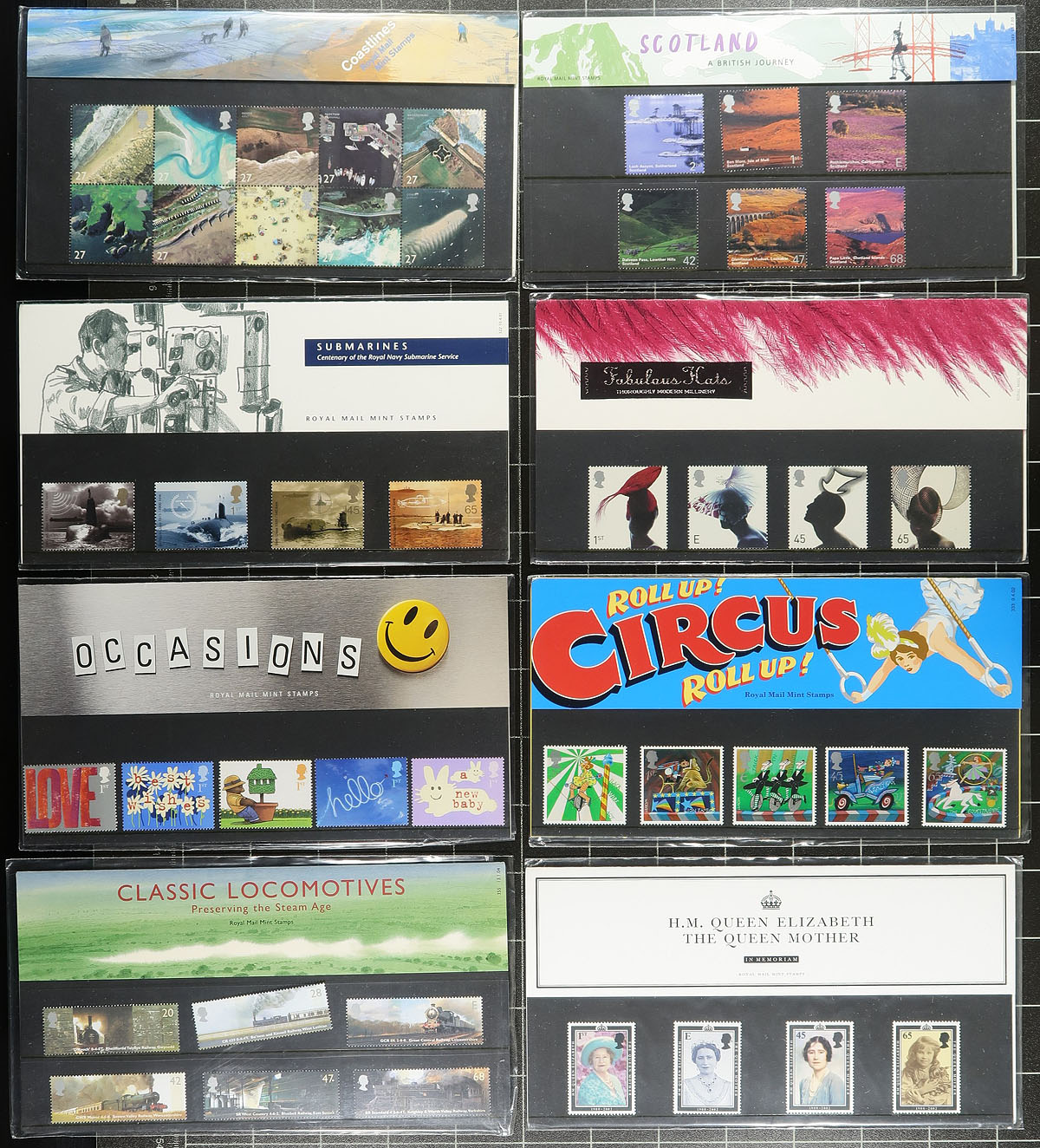 Nice collection of never hinged Great Britain in presentation packs, 91 different in total ranging from 1999 to 2005. We note several better denominations, including many "1st" issues, with face value of the lot currently at £435.00. A nice lot which will have a surprisingly good catalogue value. Clean and very fine. Estimate =