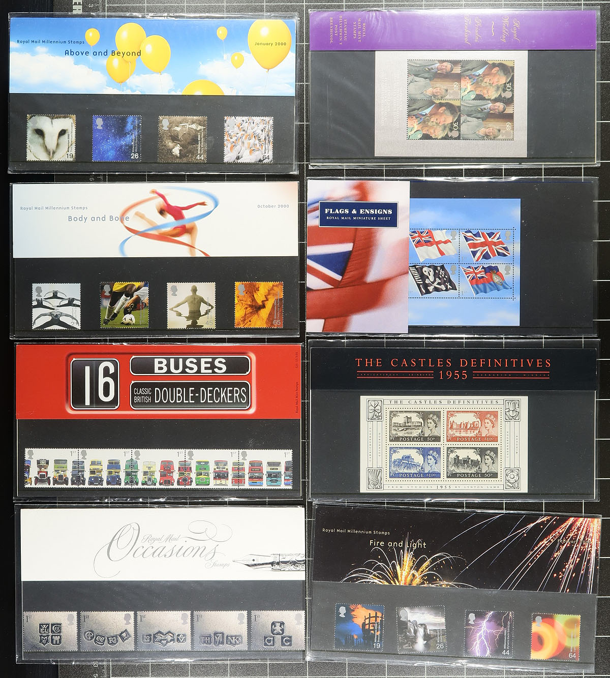 Nice collection of never hinged Great Britain in presentation packs, 91 different in total ranging from 1999 to 2005. We note several better denominations, including many "1st" issues, with face value of the lot currently at £435.00. A nice lot which will have a surprisingly good catalogue value. Clean and very fine. Estimate =